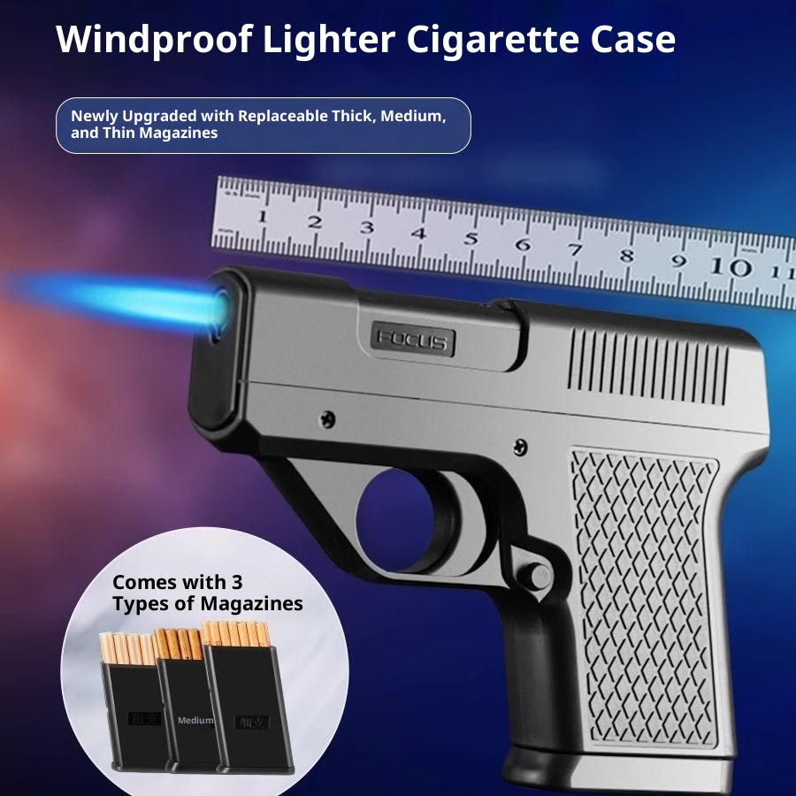Gun-type Windproof Gas Lighters Cigarette Case