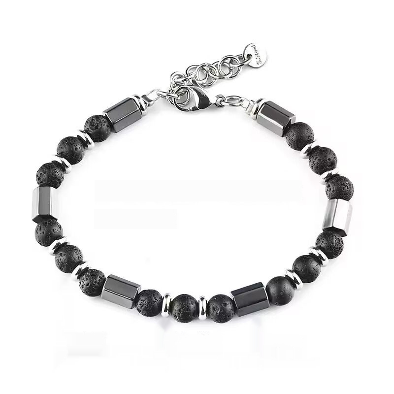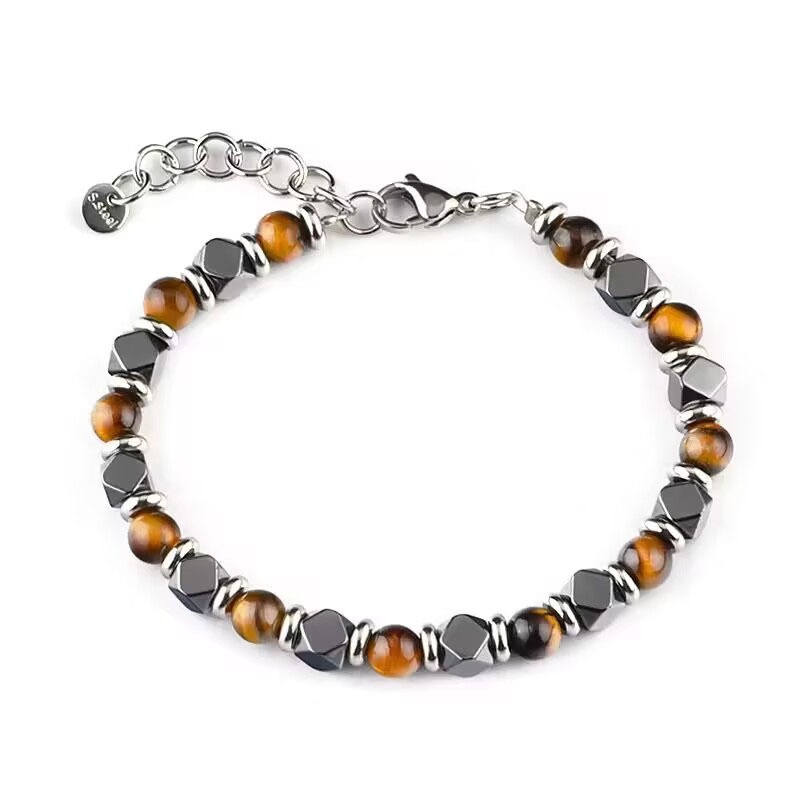 Color: haematite hexagon Tiger Eye bracelet 19cm, haematite rhombus Tiger Eye bracelet 19cm, haematite hexagon volcano bracelet 19cm