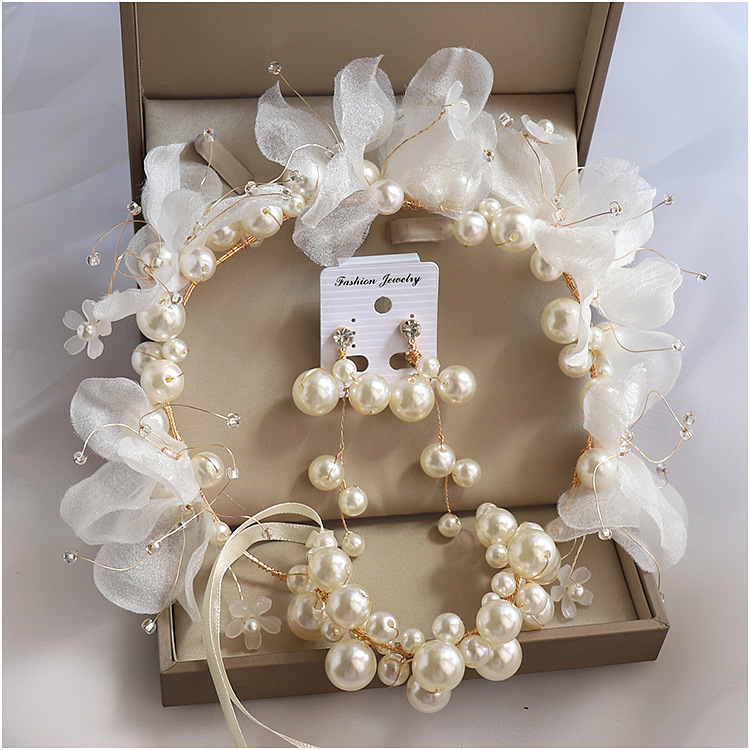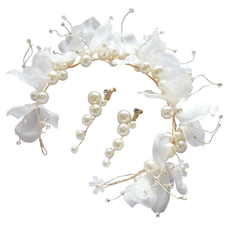 Color: white pearl juan yarn headdress + style 1 ear clip