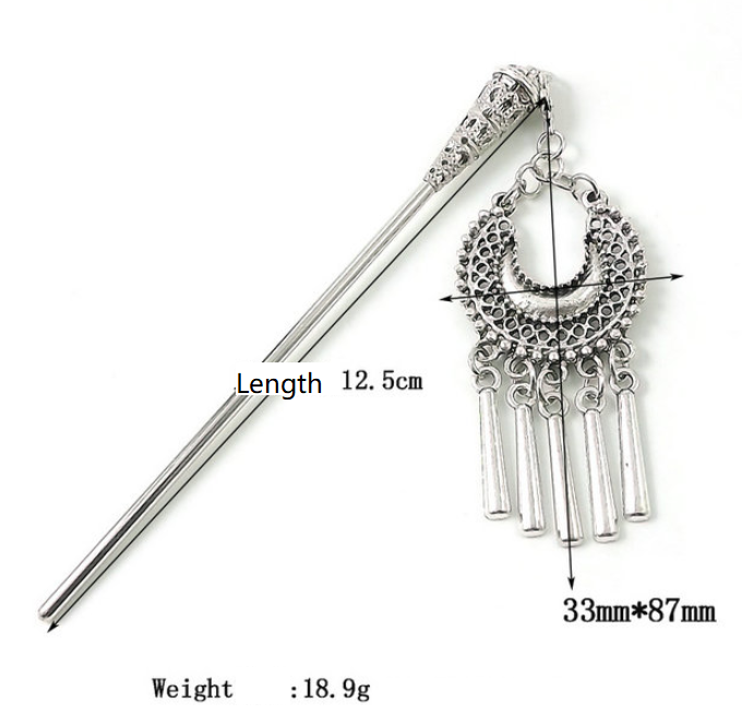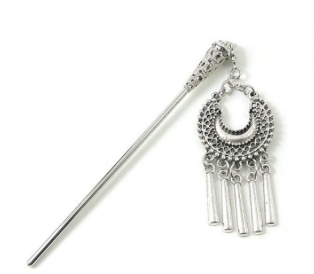 A peak at bun of homemade alloy zinc and color silver . This hair jewelry will give an ethnic and zen touch to your updos.