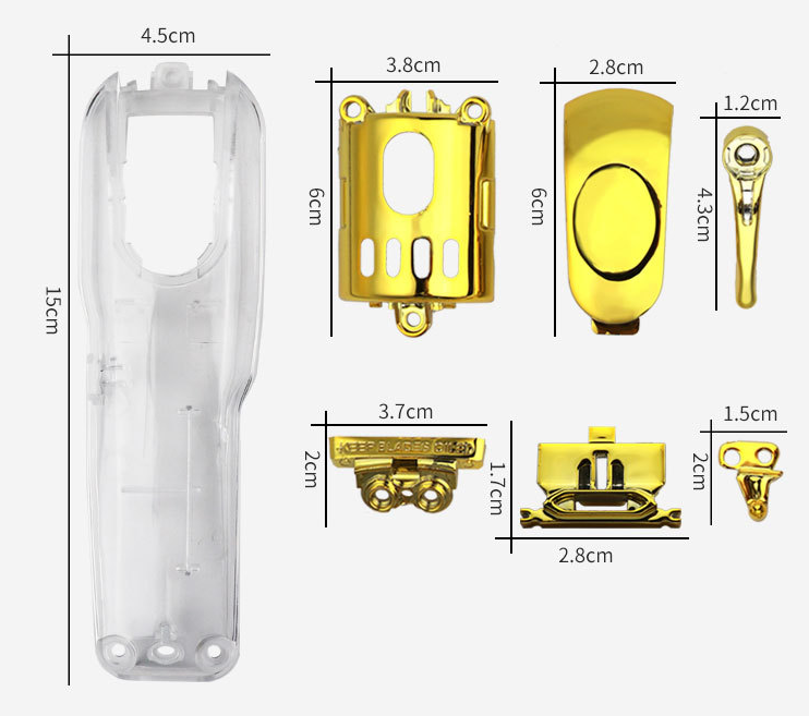 Color: gold full set of small accessories + transparent perforated upper cover, rose gold full set of small accessories + transparent perforated upper cover, electroplated blue full set of small accessories + transparent perforated upper cover, silver full set of small accessories + transparent perforated upper cover