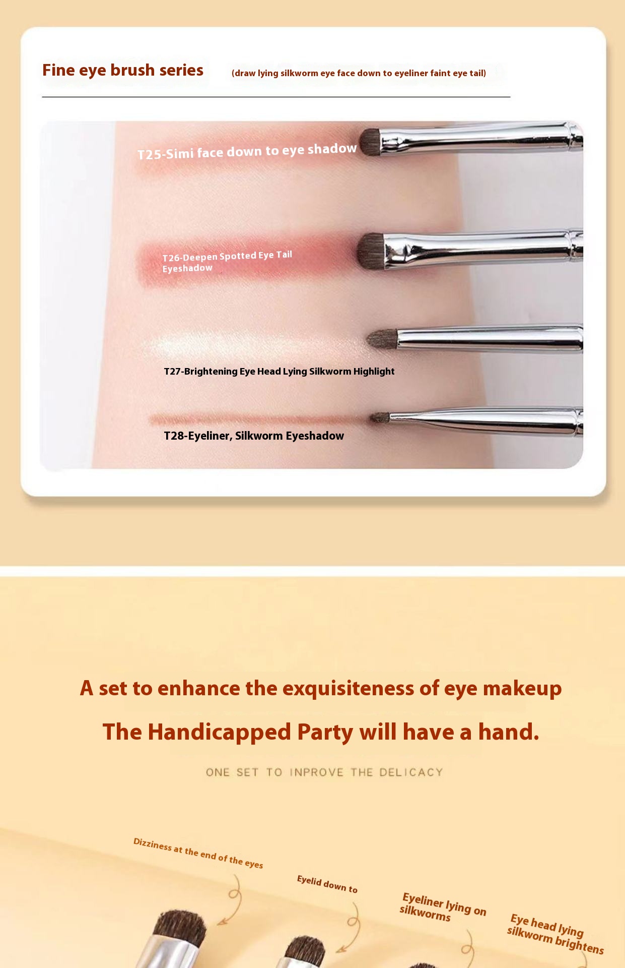 Appearance color: T25 eye shadow blending brush, T26 small size eye shadow blending brush, T27 cone detail brush, T28 outline detail brush, horse hair 4 fine brush combination