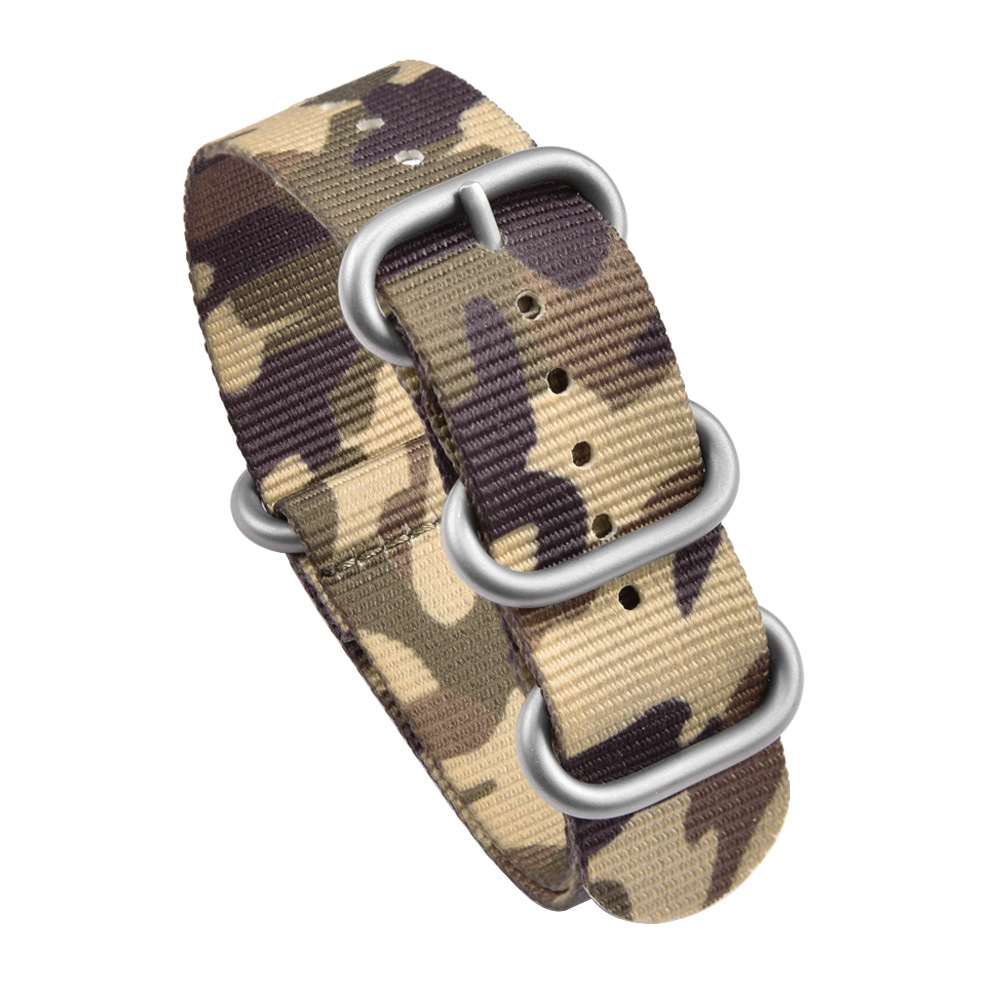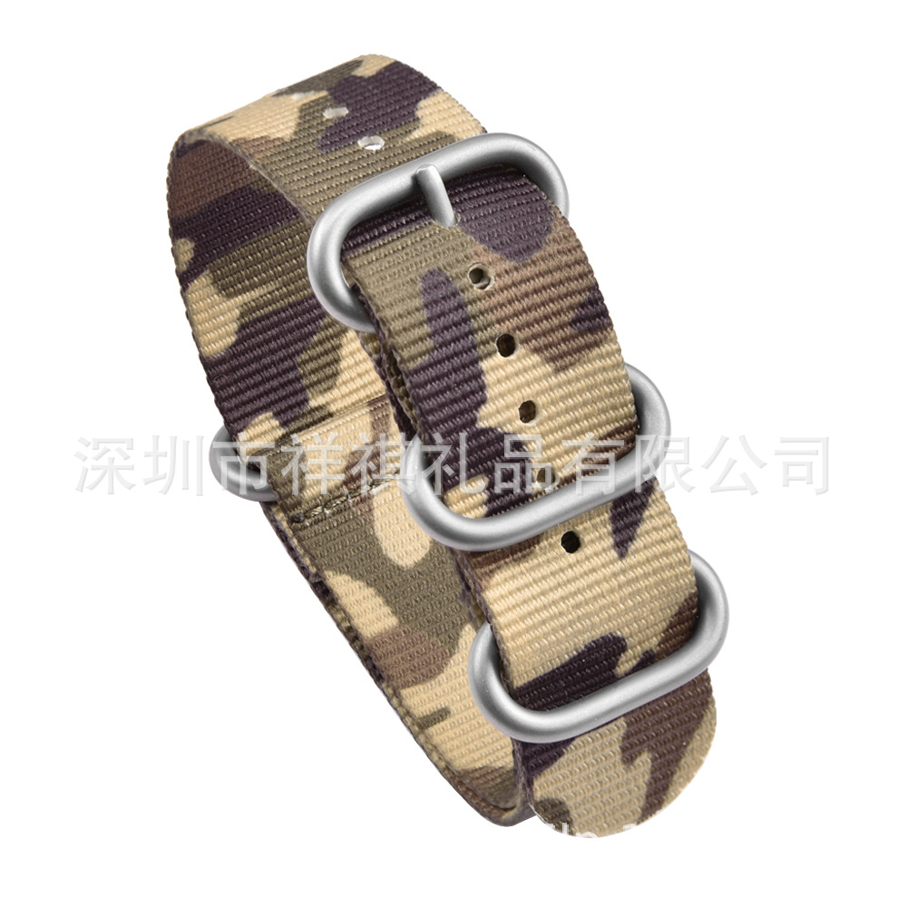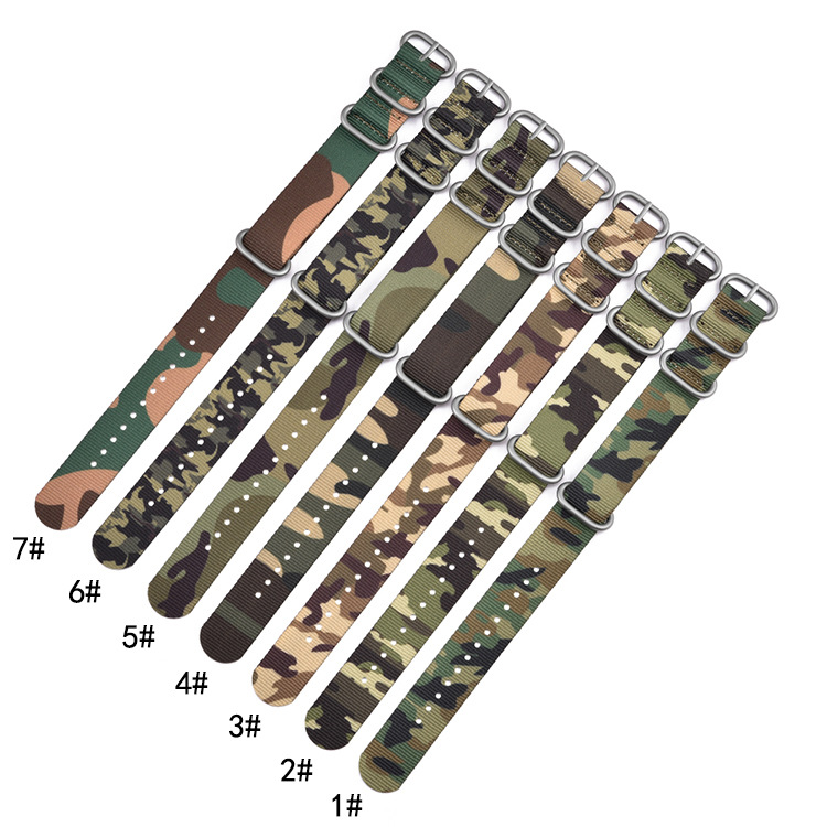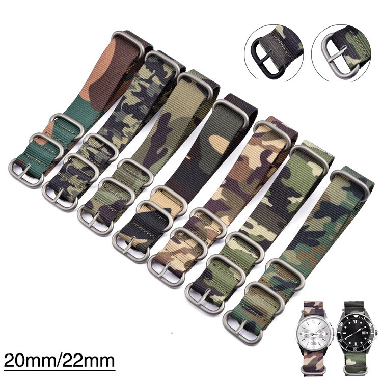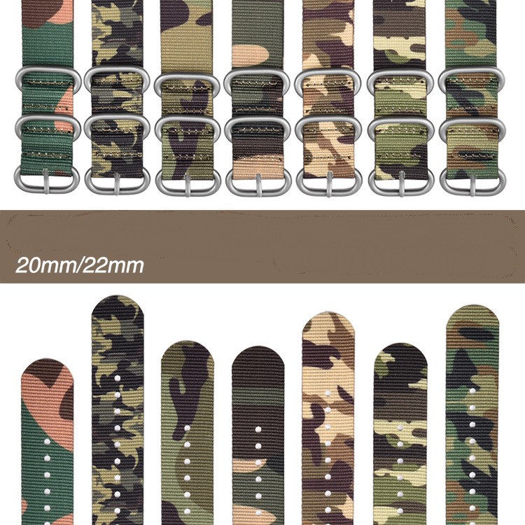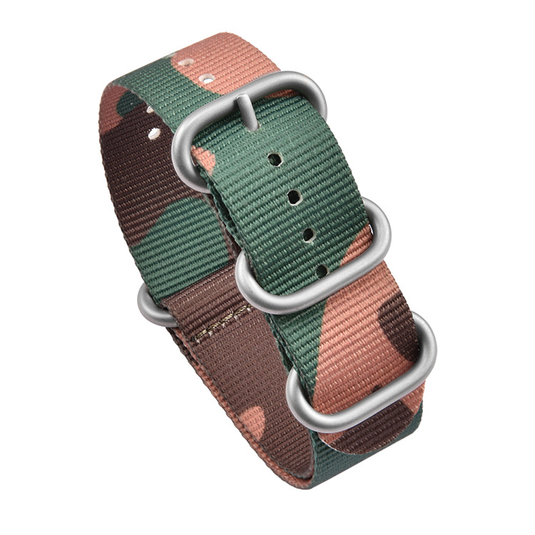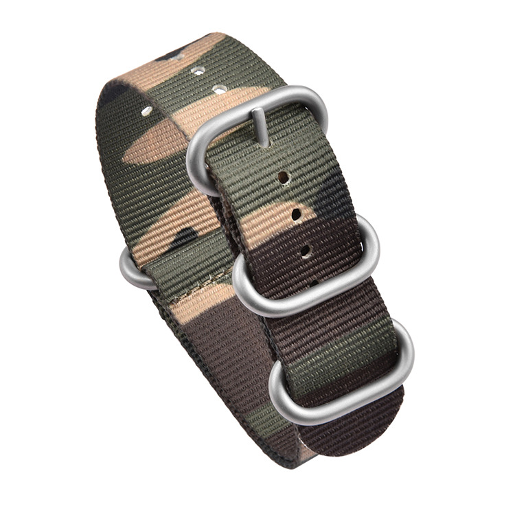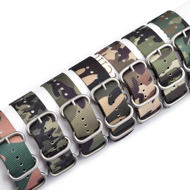 Product Name: High quality camo nylon watch band +304 stainless steel ring