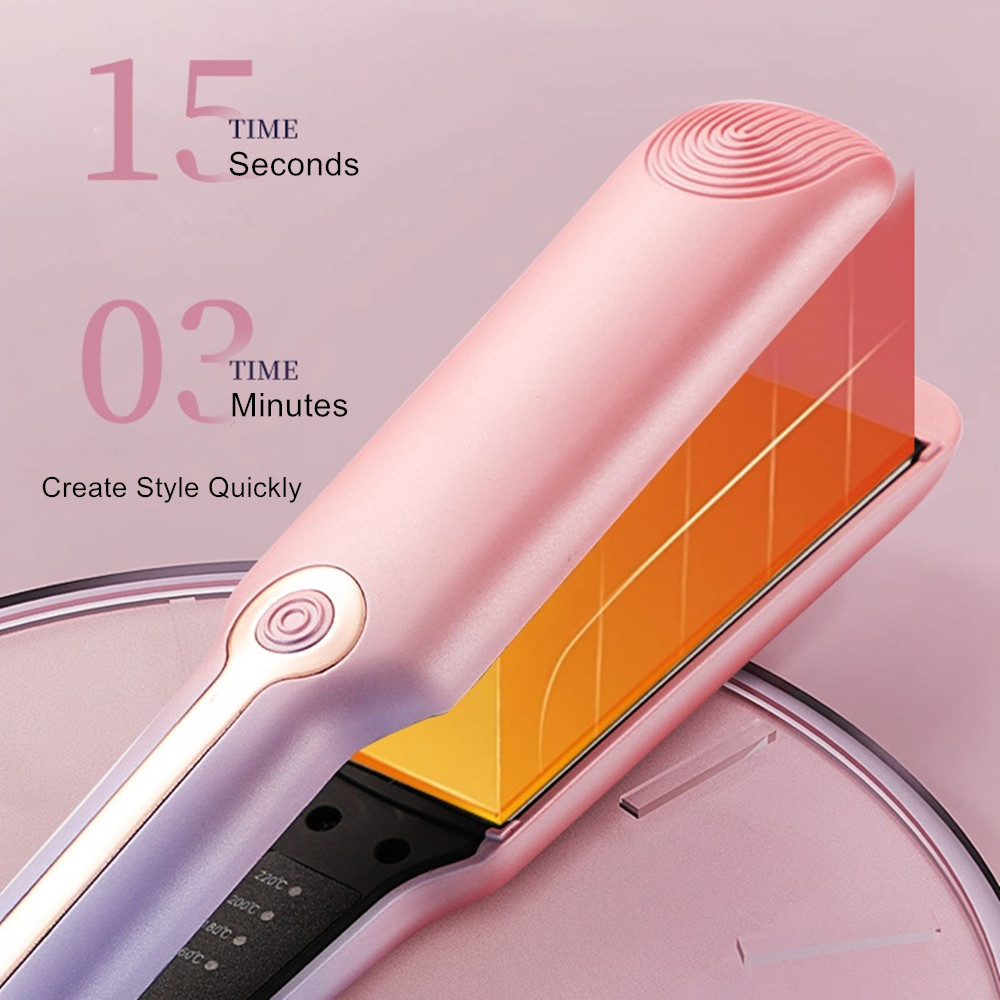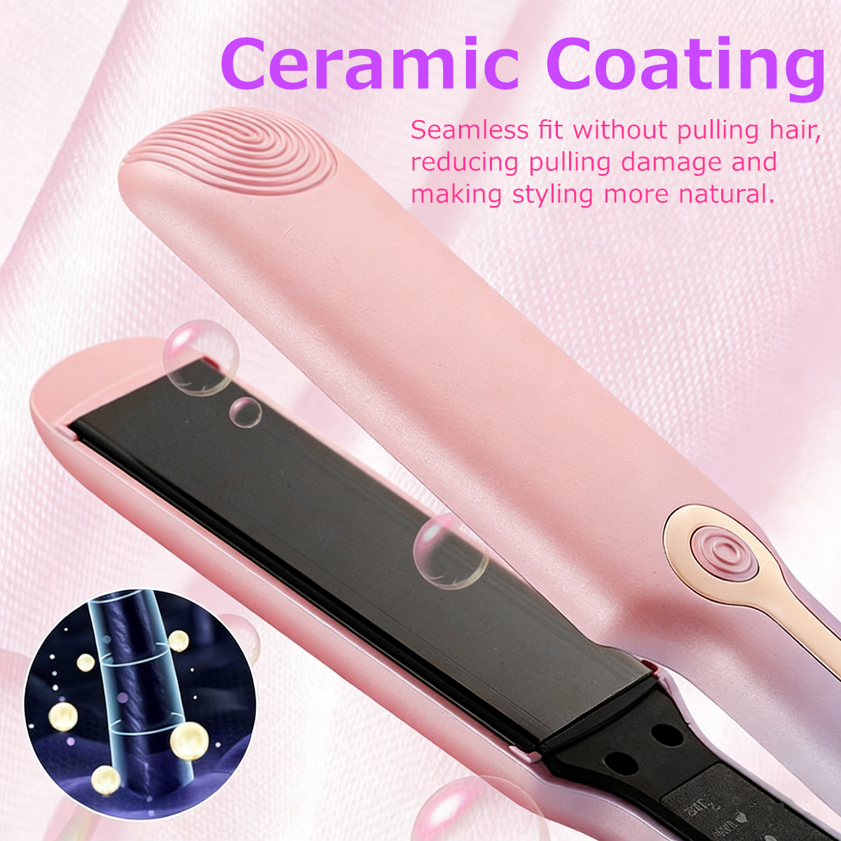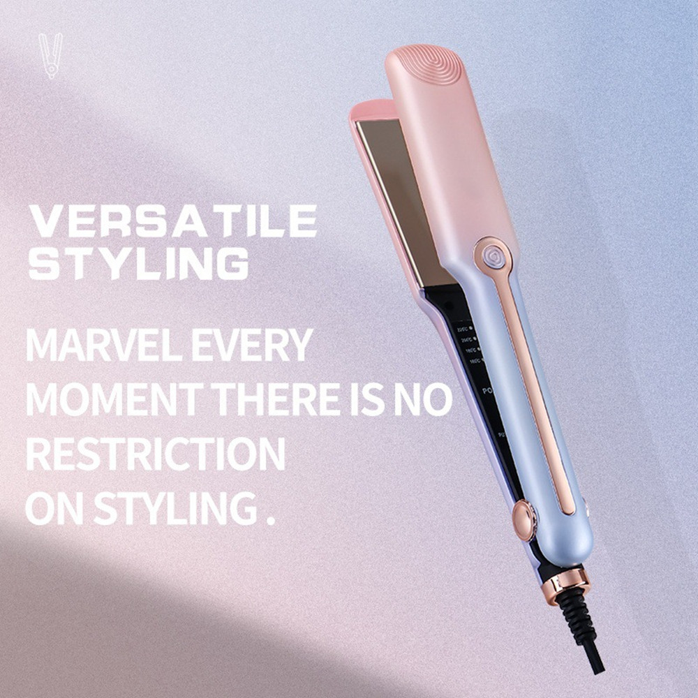 This Professional Ceramic Hair Straightener & Curler is designed for both home and salon use. Works on dry or wet hair, giving you versatile styling with high heat and smooth ceramic plates.