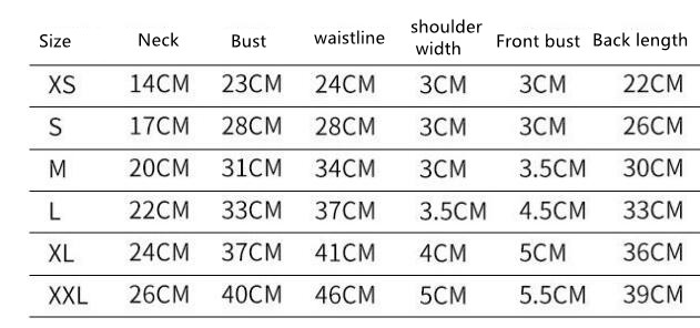 Size: XS size (back length 22 cm. February to March), S size (back length 26 cm. March to April), M size (back length 30 cm. 4-5 months), L size (back length 33 Cm. June-August), XL size (back length 36 cm. adult), XXL size (back length 39 cm. adult)