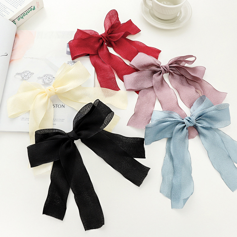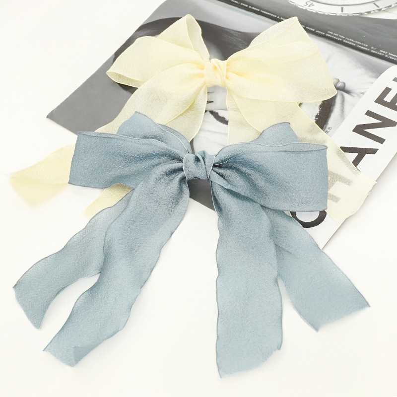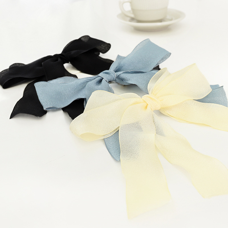 Name: summer new accessories hairpin fairy temperament sweet solid color mesh bow streamer top clip on the back of the head Q4133