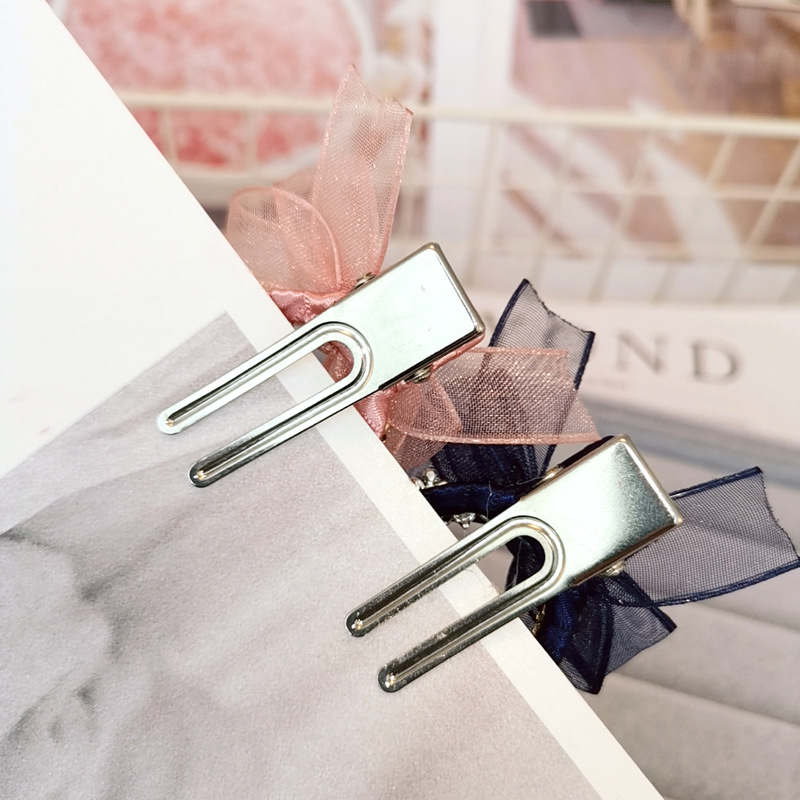 Material: Korean version of the new hairpin fashion lace mesh butterfly hair accessories metal clip girl sweet bangs broken hairpin Q3252