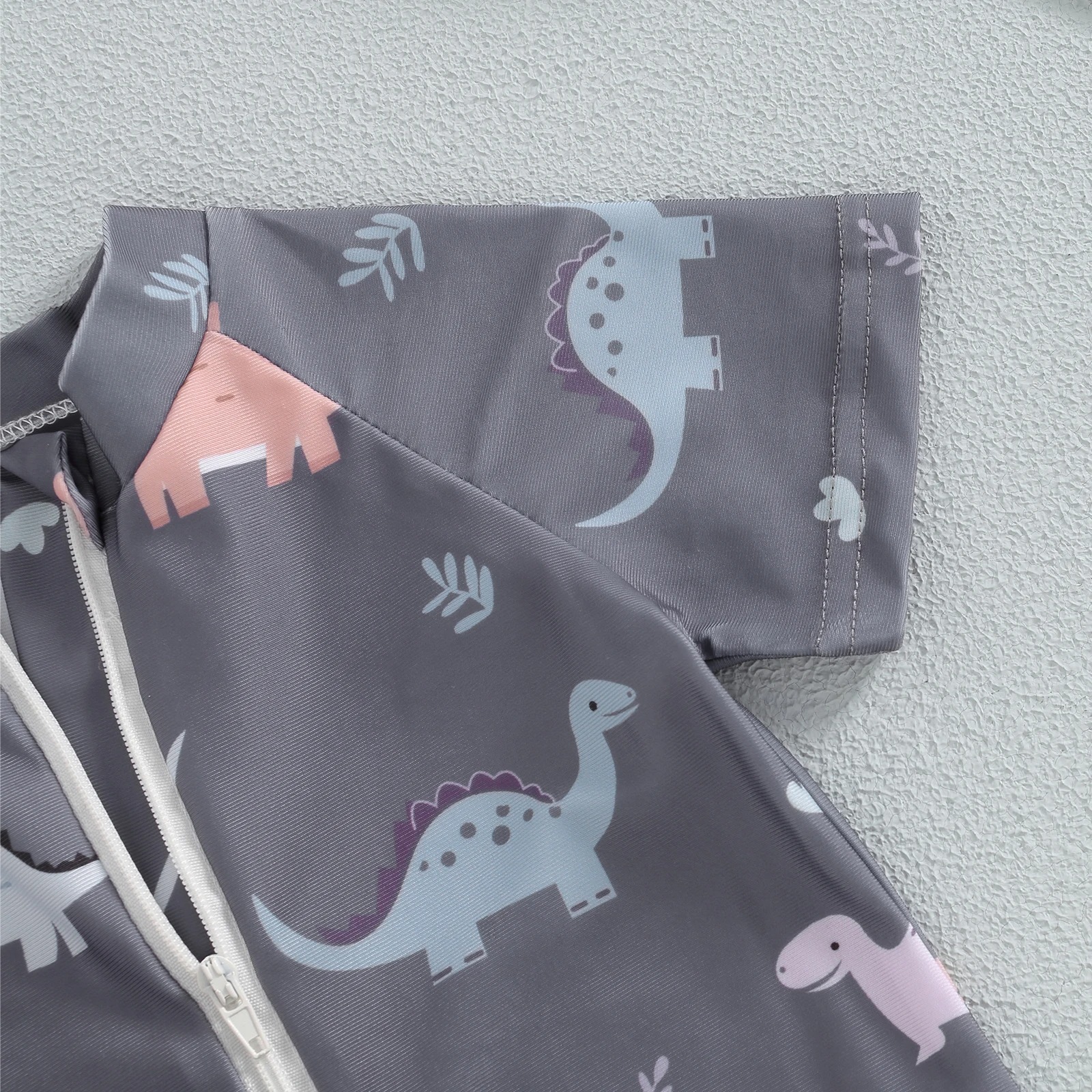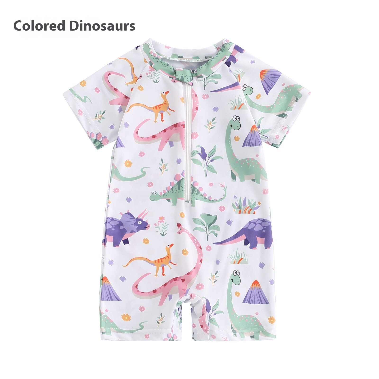 Color: light gray dinosaur, dark gray dinosaur, colorful little dinosaur