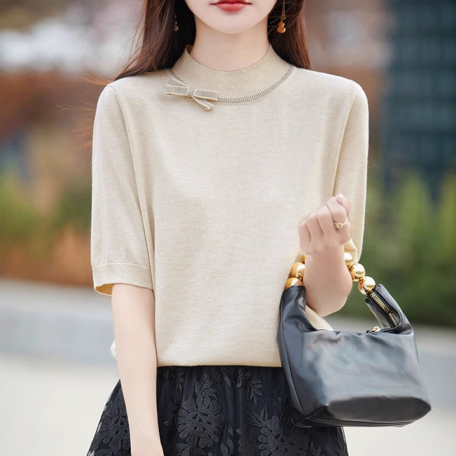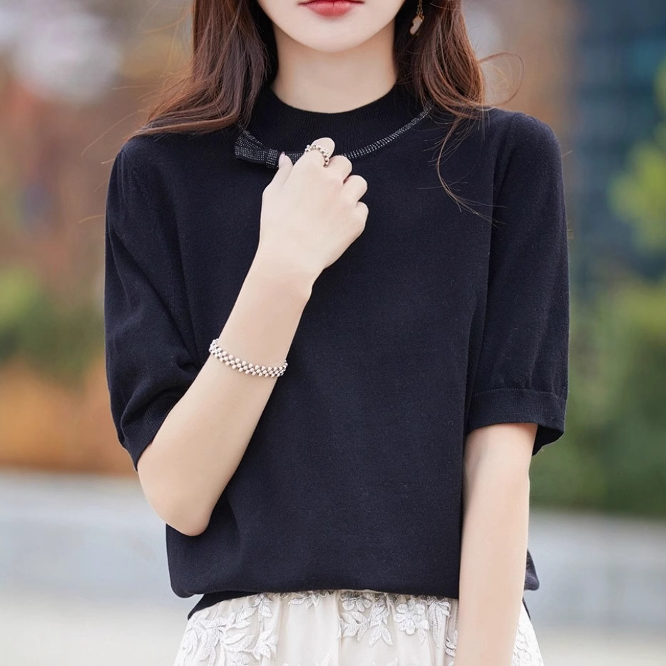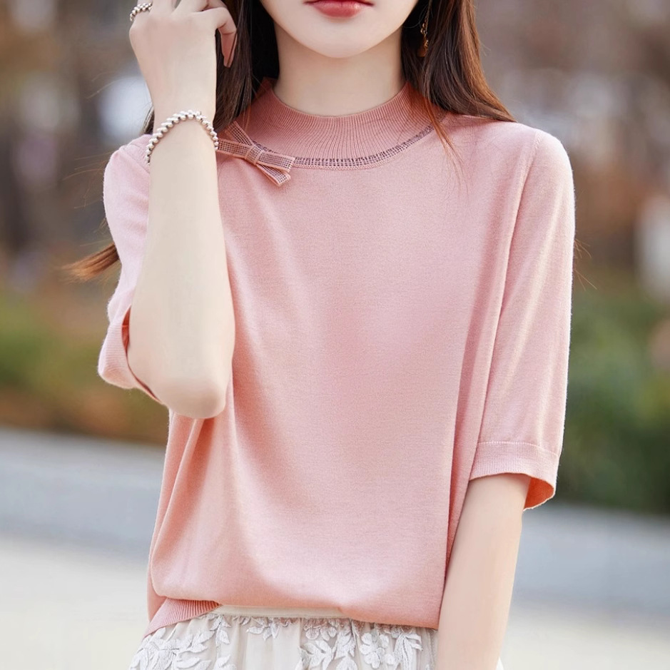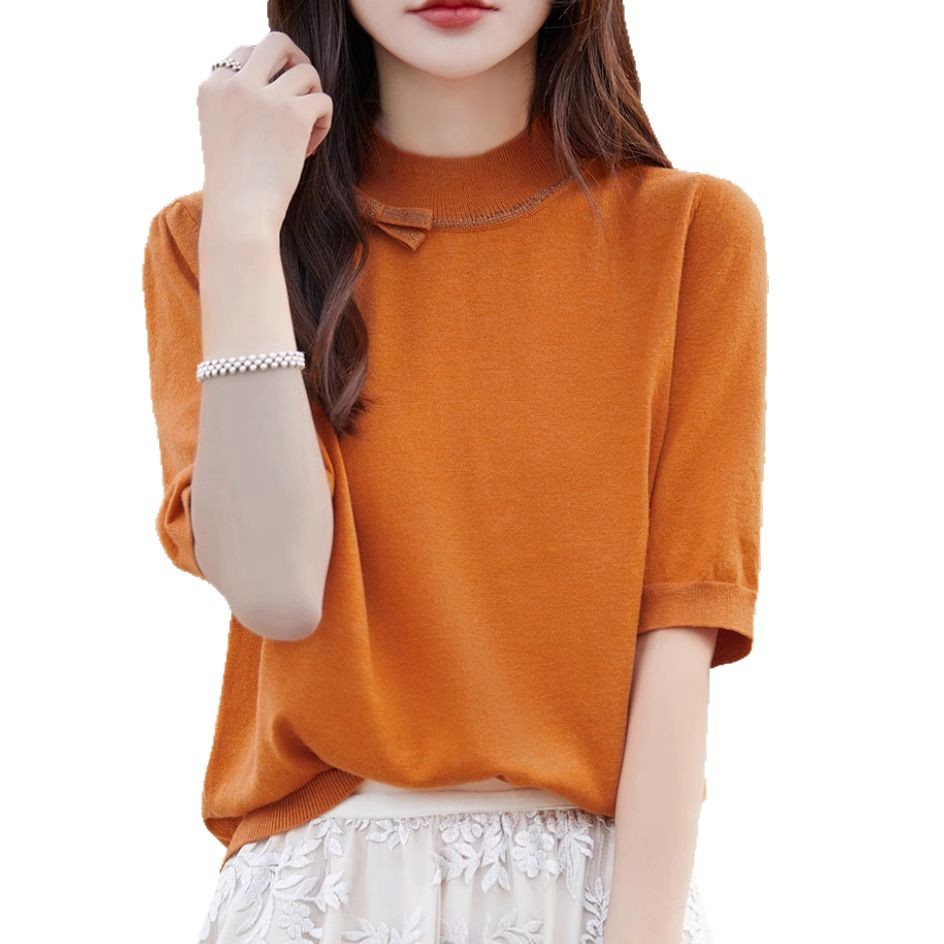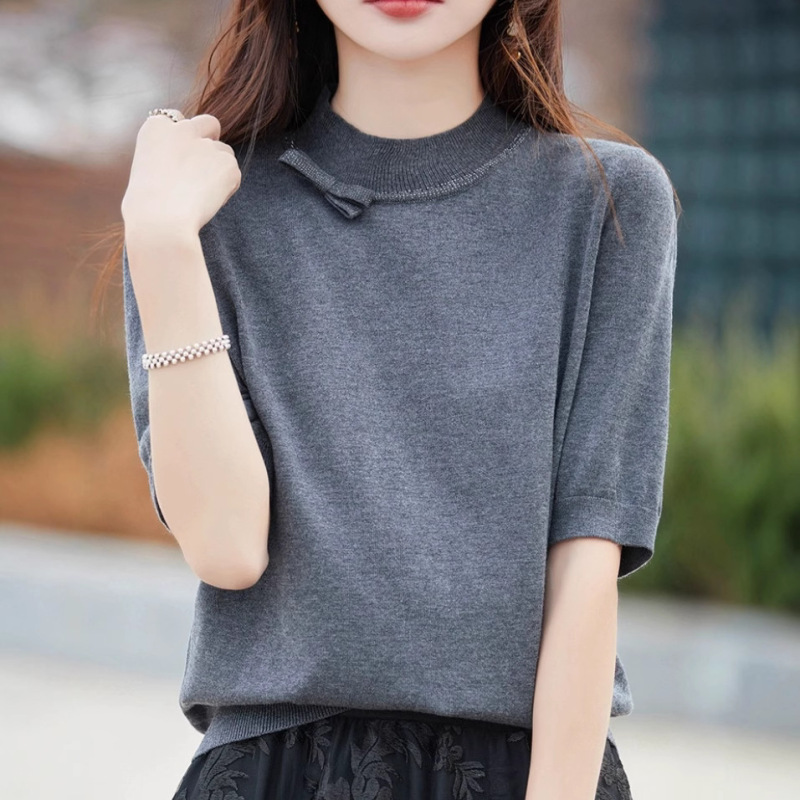 Half-high Collar Women's Versatile Thin Knit Top