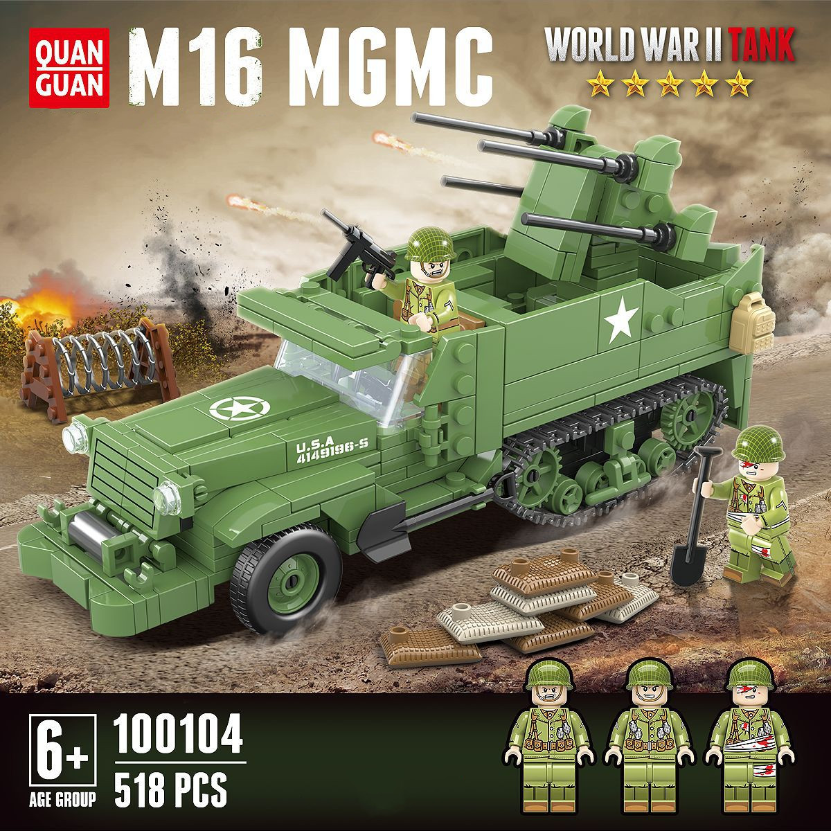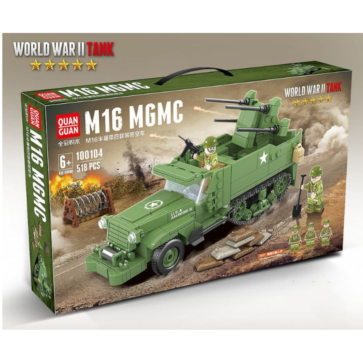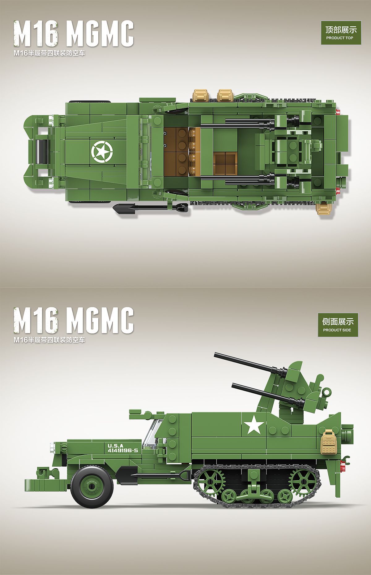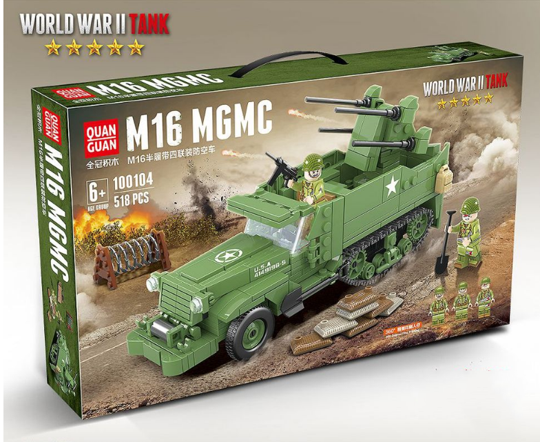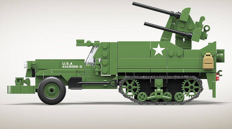 Half-Track Quadruple Anti-Aircraft Vehicle Model Children Assembling Building Block Toys
