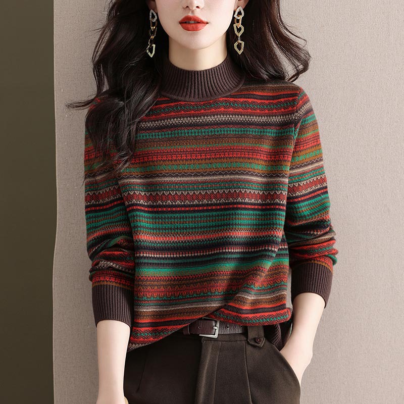 Half Turtleneck Retro Brocade Sweater Women's All-matching Western Style
