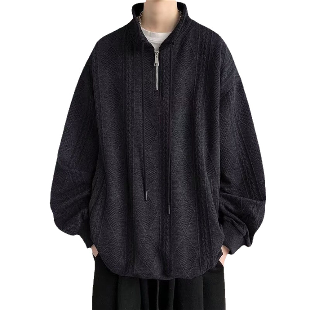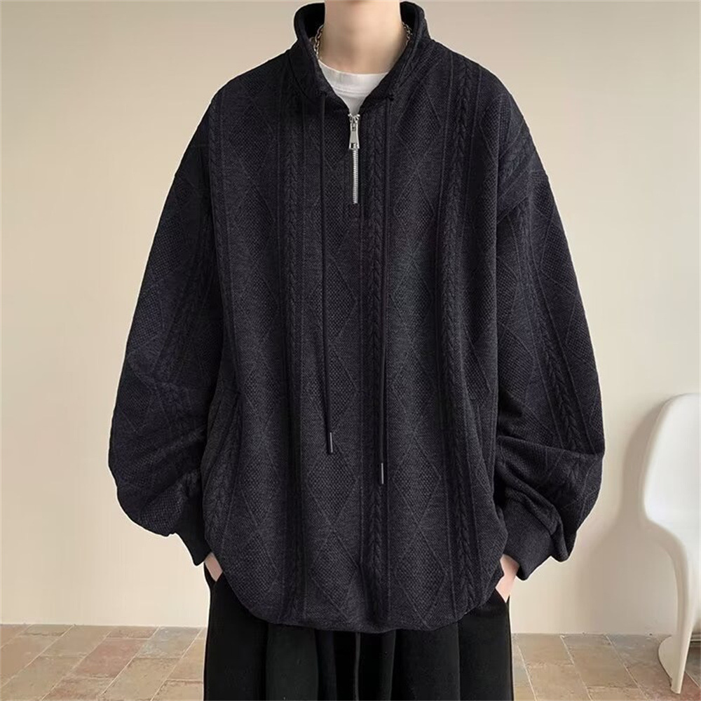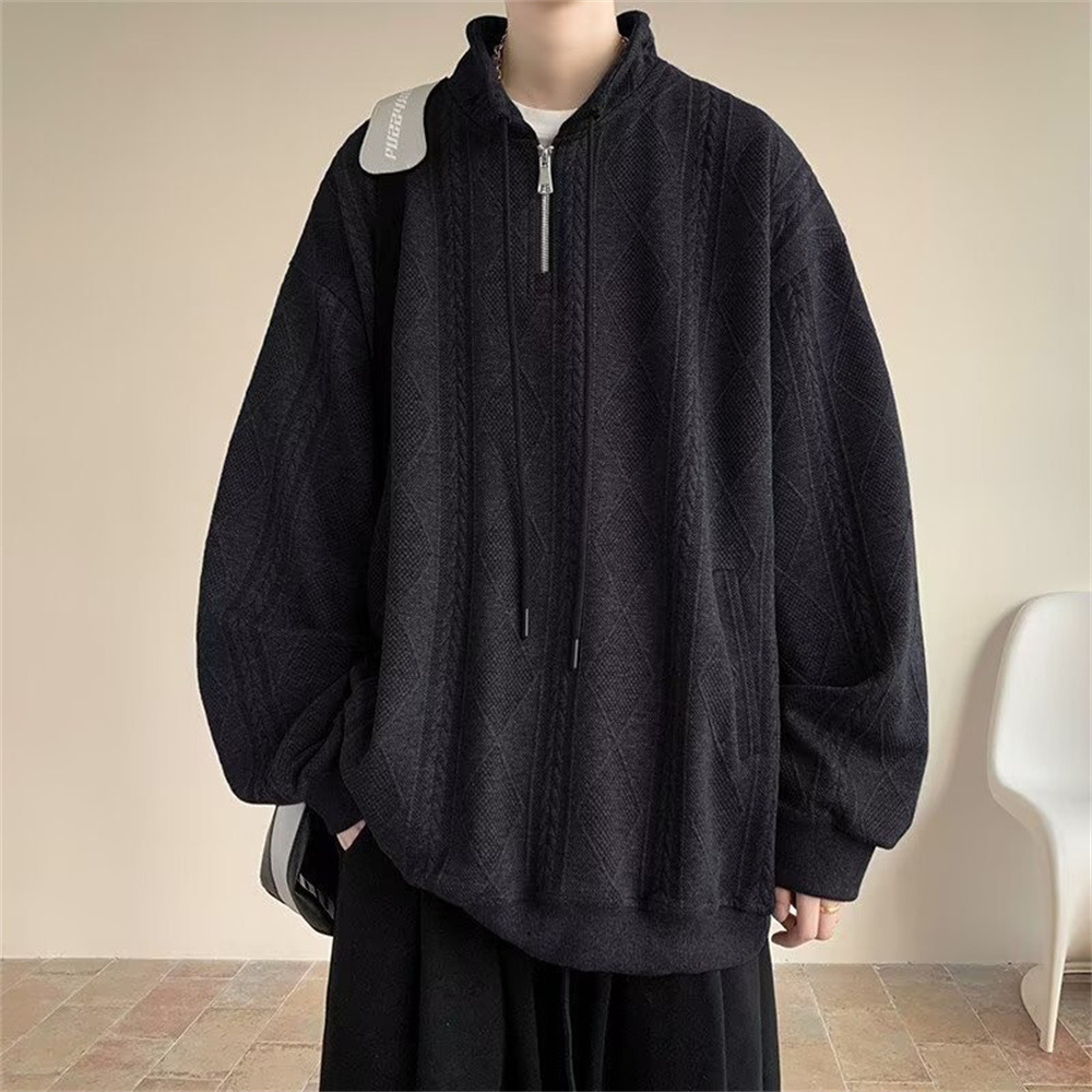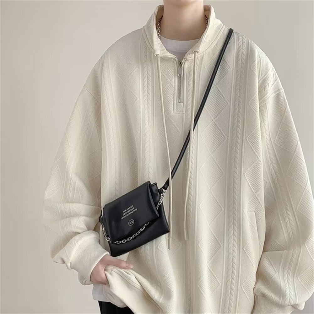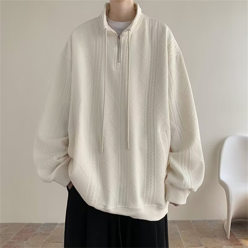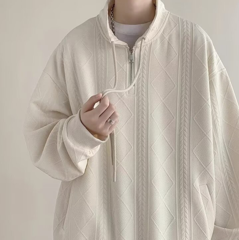 Half Zipper Creamy-white Jacquard Stand Collar Sweater