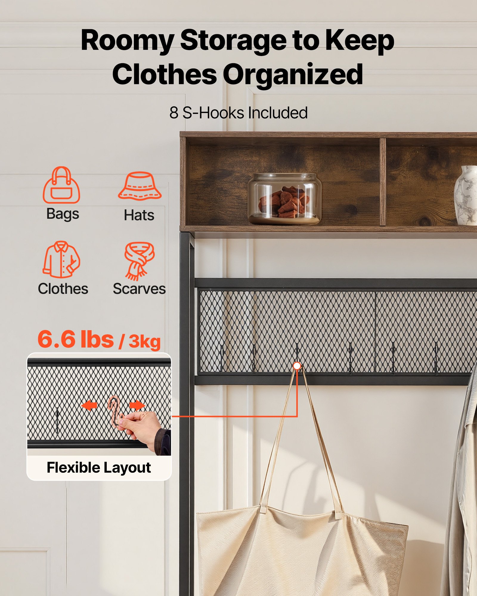 Adjustable Hooks: Movable S-hooks provide flexible hanging options for hats, jackets, scarves, and more, allowing you to customize the layout for quick access and efficient everyday organization