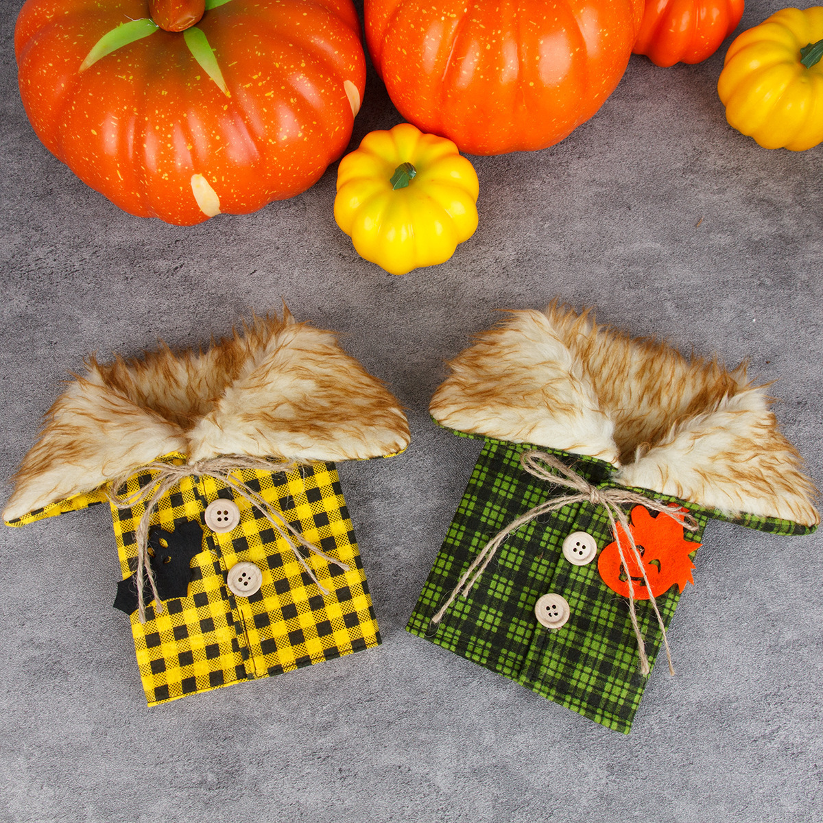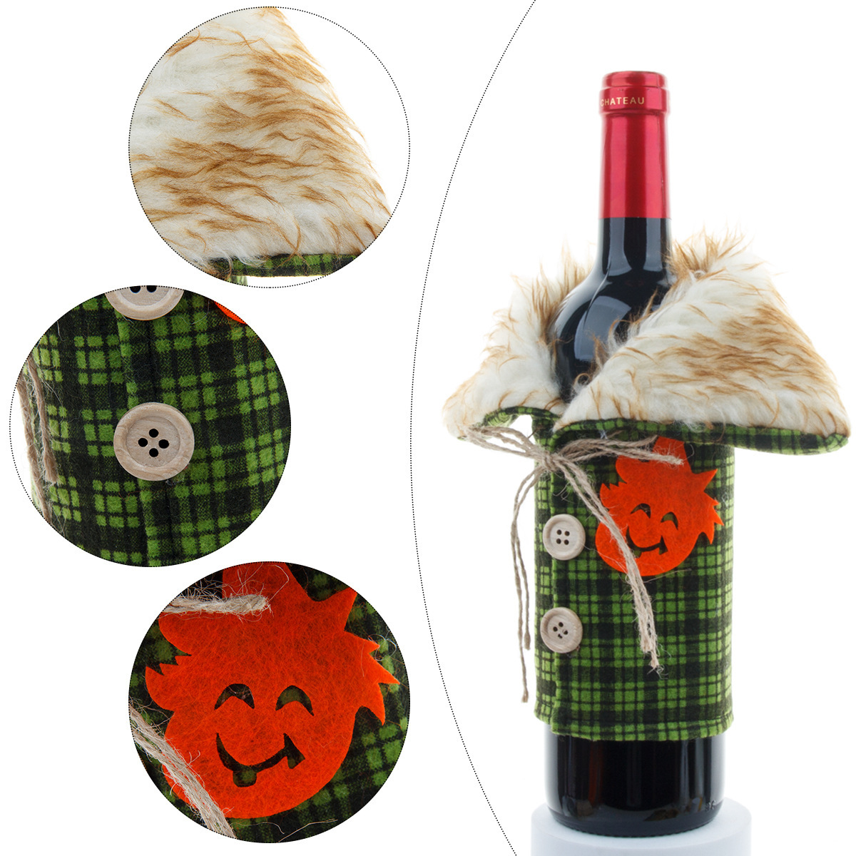 Product informationMaterial: plush, felt, etc.Color: yellow, greenCraft: ManualPattern: Check Package: Wine set*1