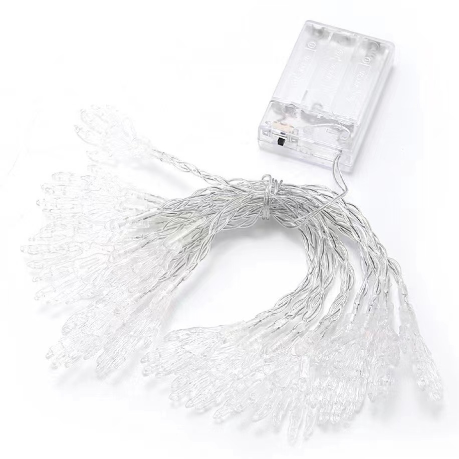 Power supply: 1.5m 10 lights (battery type) always on, 3 m 20 lights (battery type) with flash, 6 m 40 lights (battery type) with flash, 5 m 20 lights (solar energy type) eight male energy, 6.5 meters 30 lights (solar type) eight male energy,