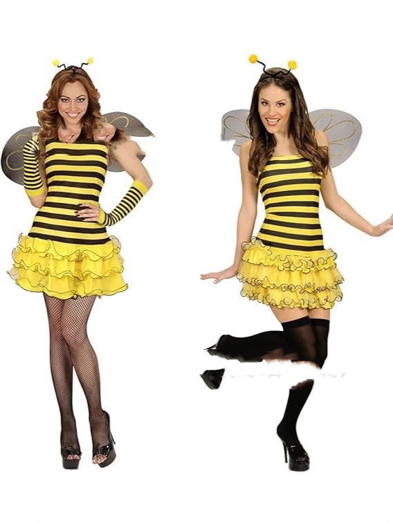 Color: black fluffy hem bee pattern clothes (including hair band Wings socks), yellow stripe bee pattern clothes (including wings hair band), red hem bee pattern clothes (including wings hair band)