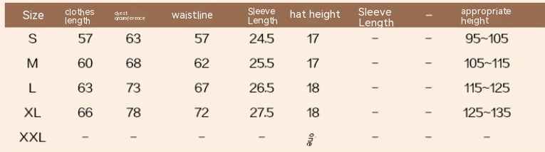 Suitable height: S(95cm-105cm),M(105cm-115cm),L(115cm-125cm),XL(125cm-135cm)
