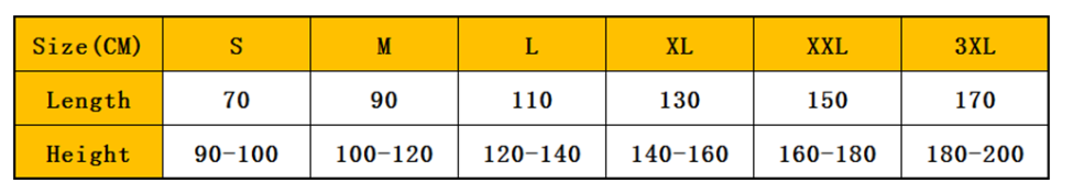 Size: S/70cm, M/90cm, L/110cm, XL/130cm, XXL/150cm, XXXL/170cm