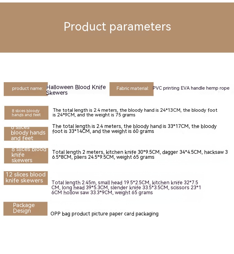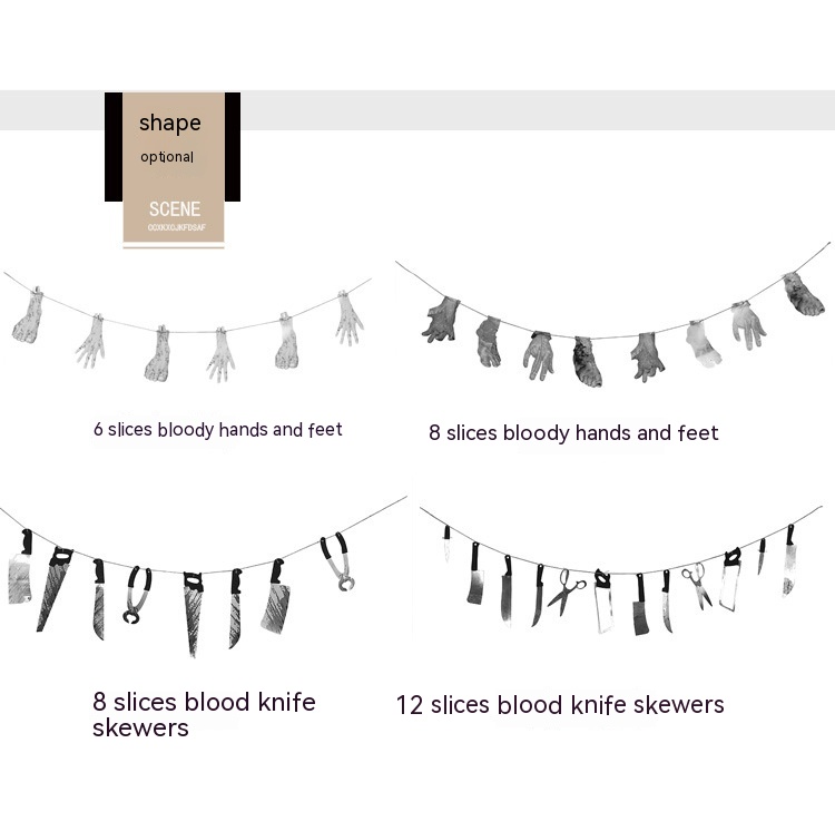 Size: 6 pieces of blood hands and feet, 8 pieces of blood hands and feet, 8 pieces of blood knife string, 12 pieces of blood knife string