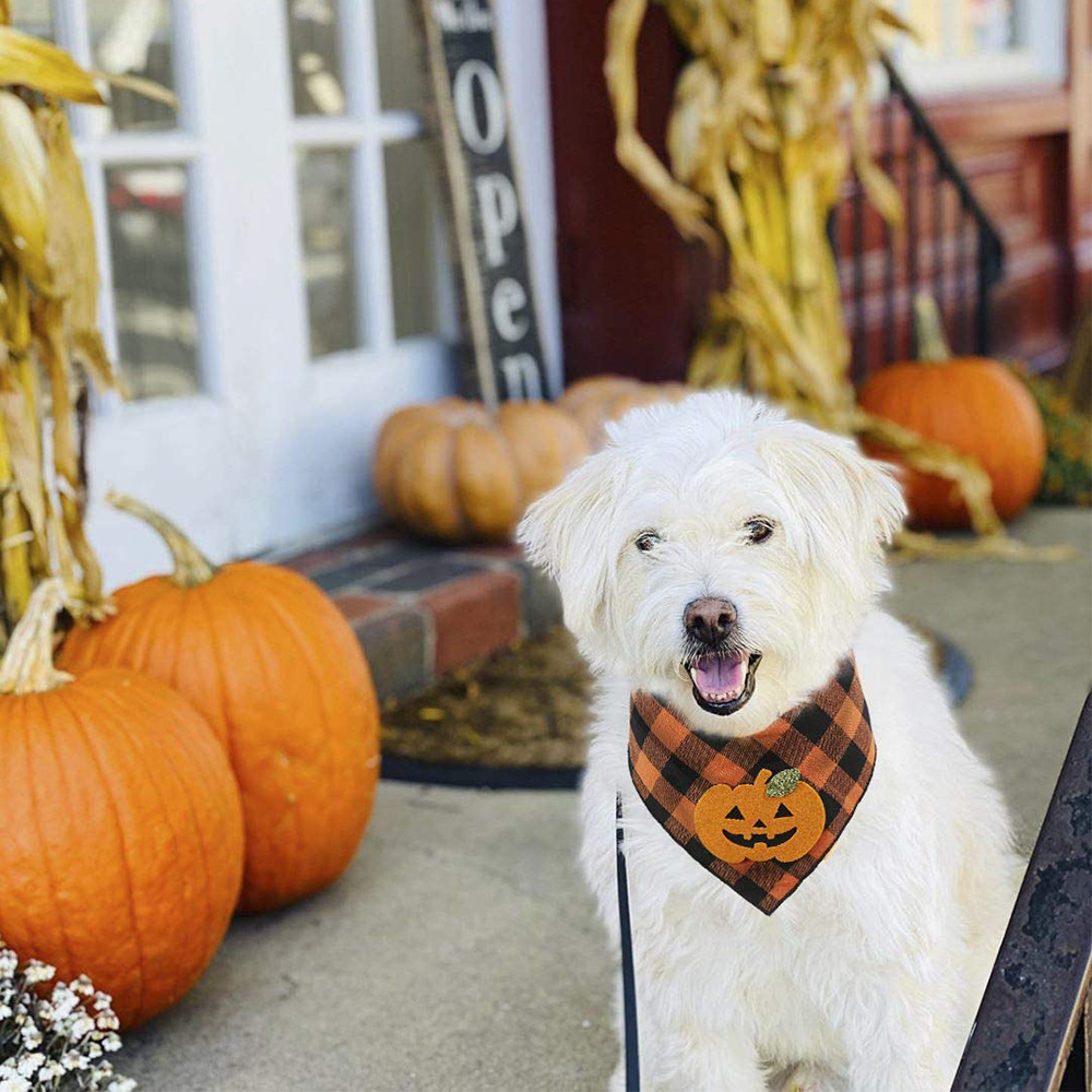 White skeleton and orange pumpkin design in one side, felt patches attached to the bandanas