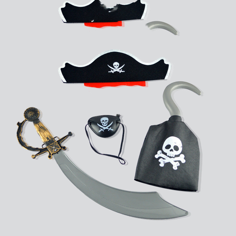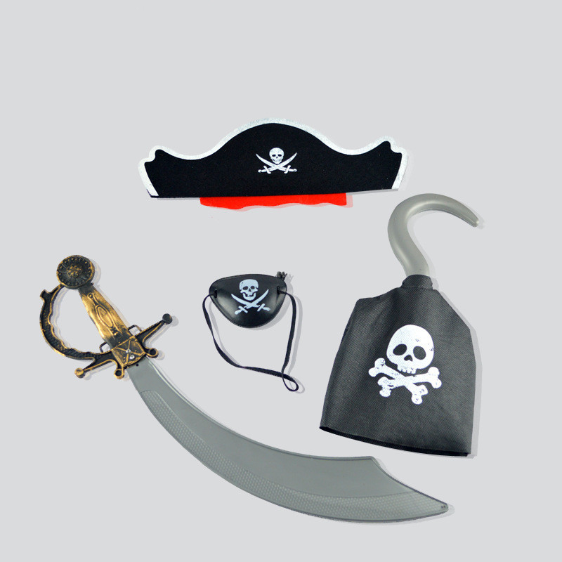 Color:A: Pirate headgear+hook+knife+eye mask 4-piece set