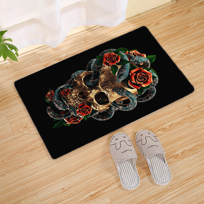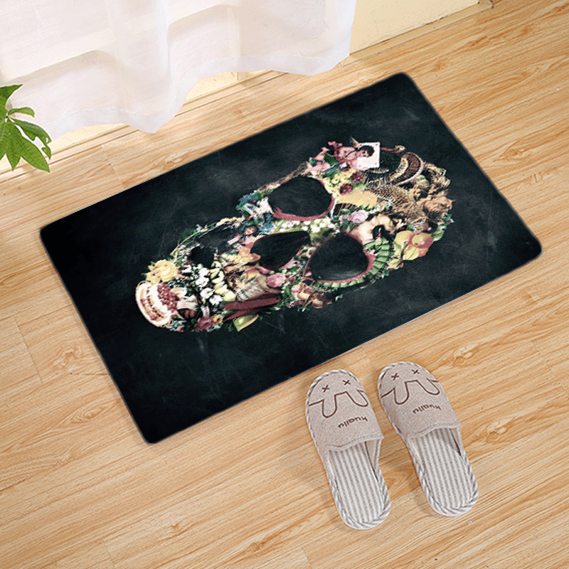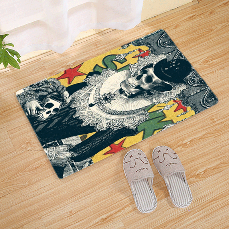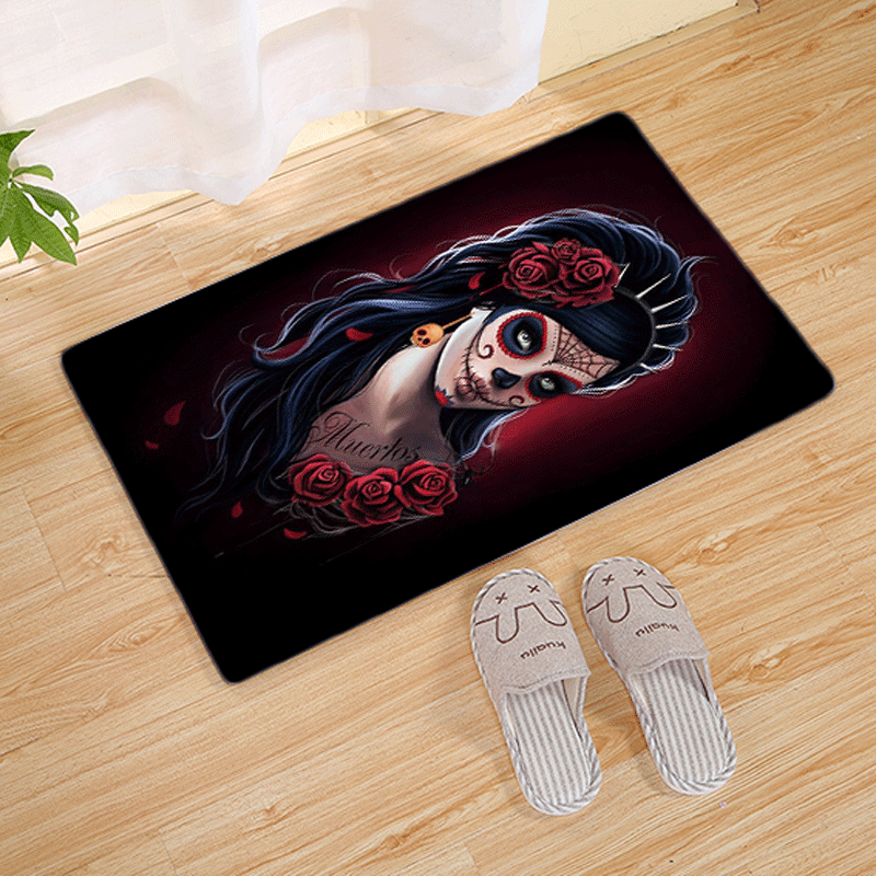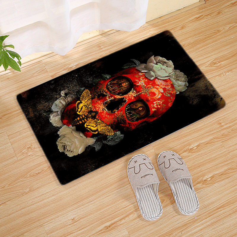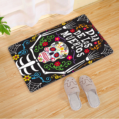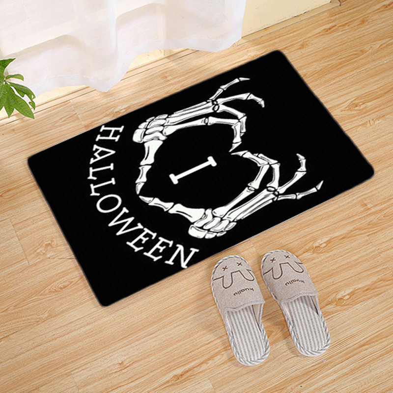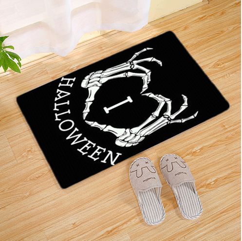 Halloween Flannel Floor Mat Bathroom Toilet Door Non-slop Mats Skull Absorbent Printing Floor Mat