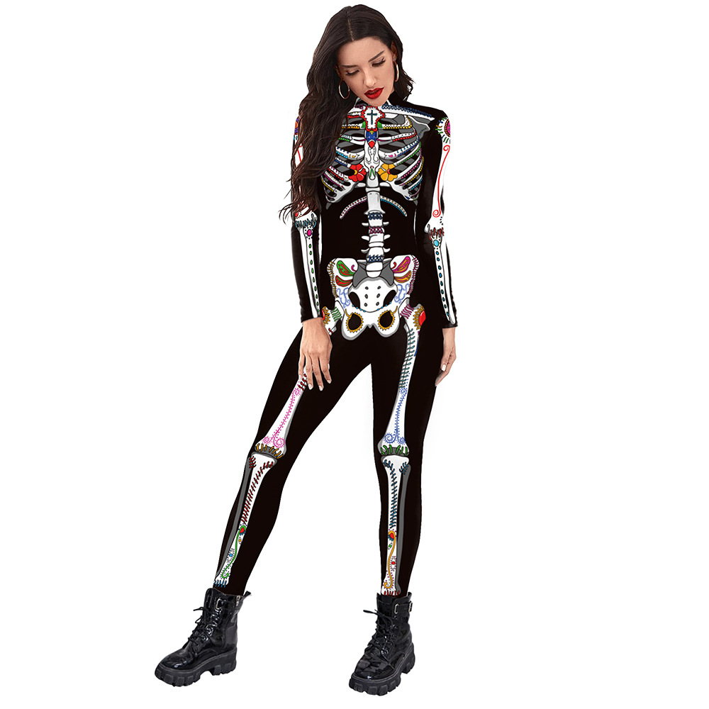 Halloween Funny Skeleton 3d Printed Stage Costume Jumpsuit