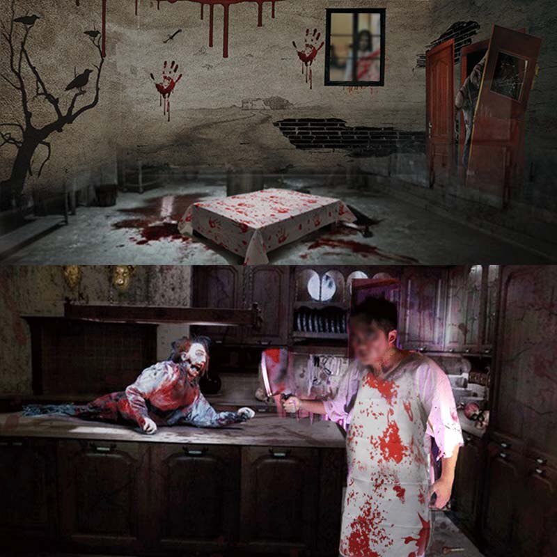 Blood Fingerprint Table Decoration Bloodstain Tablecloth Horror Bloody Handprint Apron Scary Haunted House Halloween Party Prop