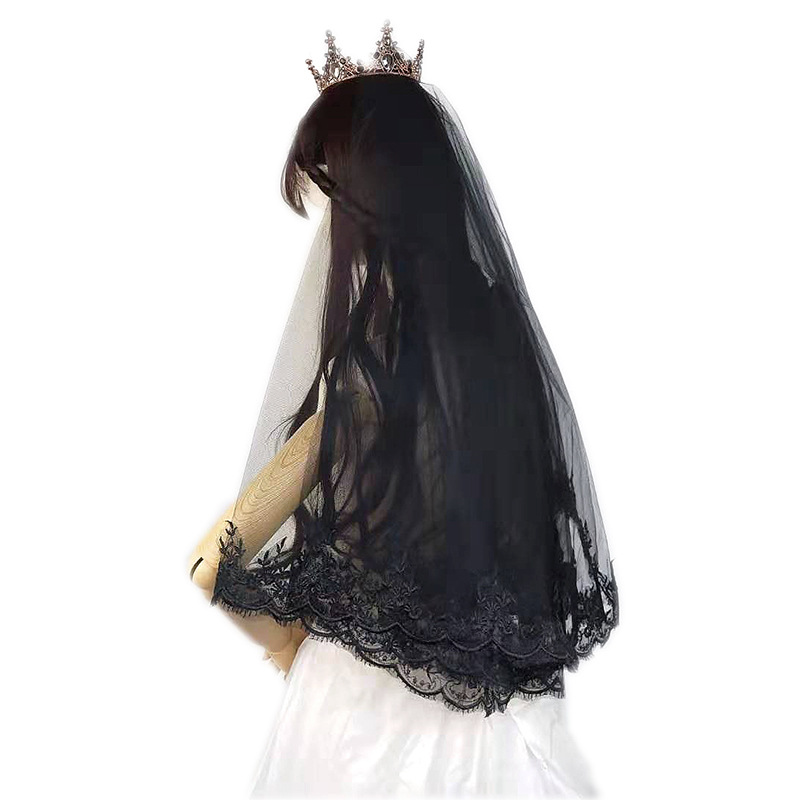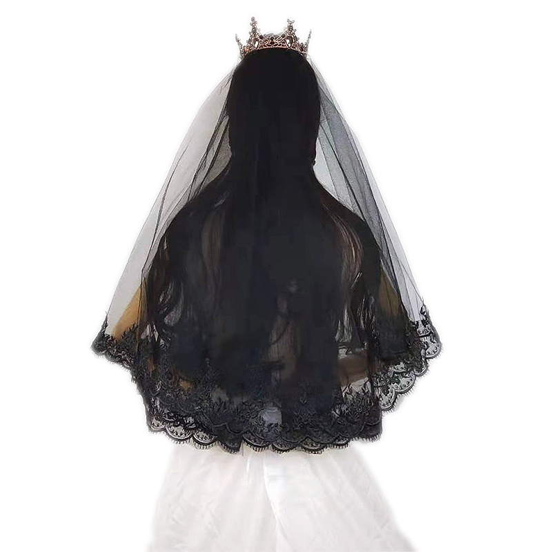 Color: Black Veil crown, black single-head yarn
