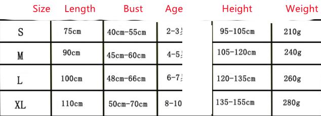 Suitable for: Height S (2-3T), M (4-5Y), L (6-7Y), XL (8-10)