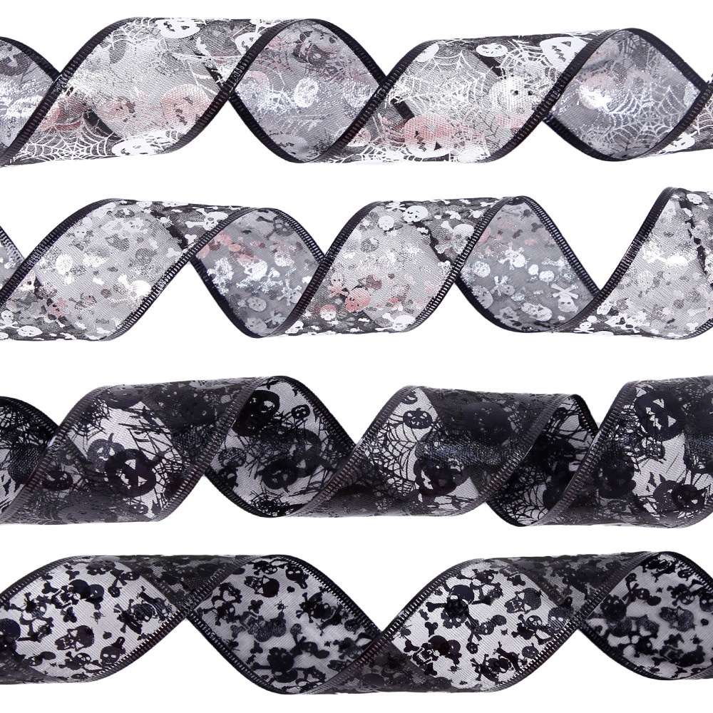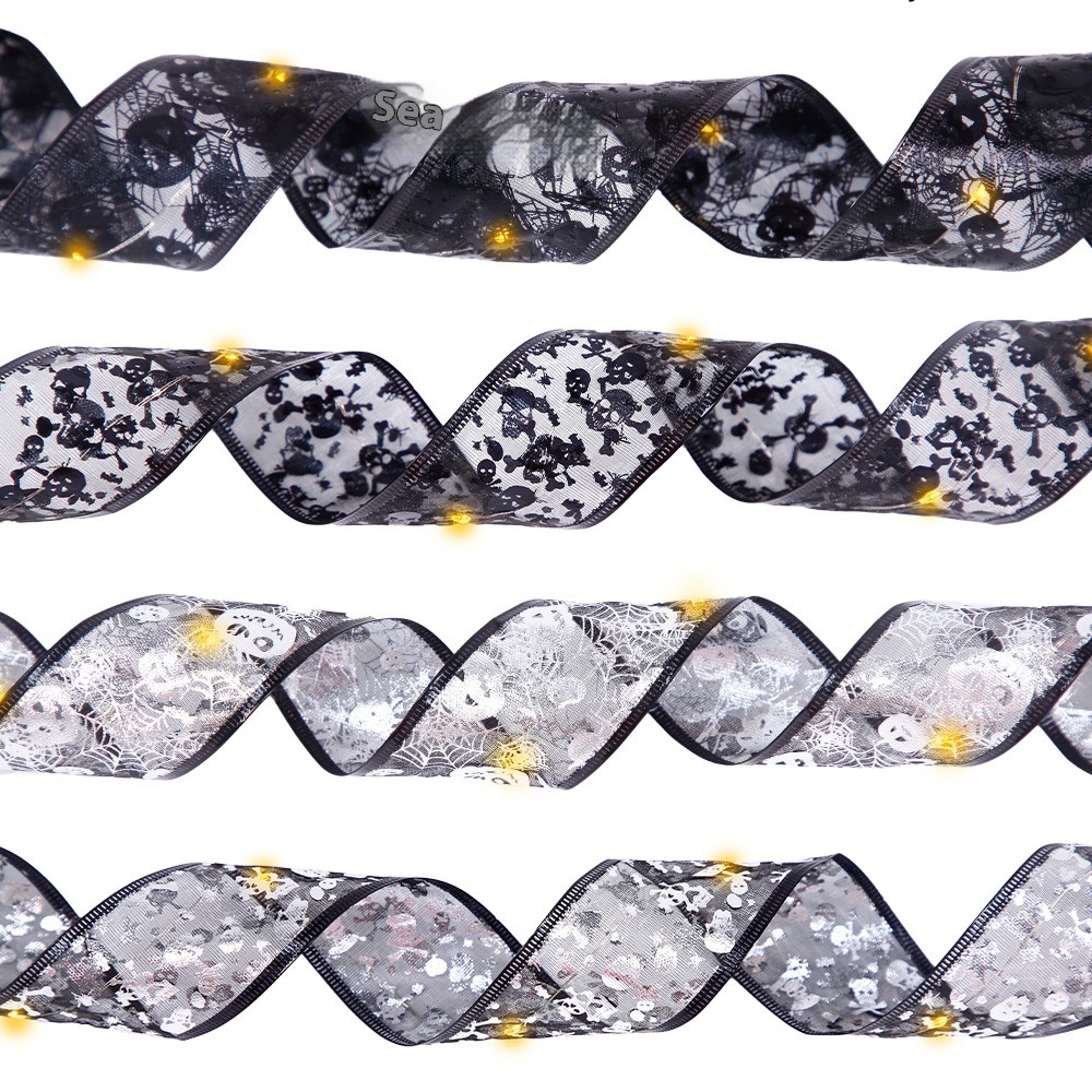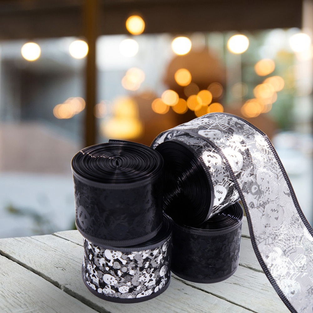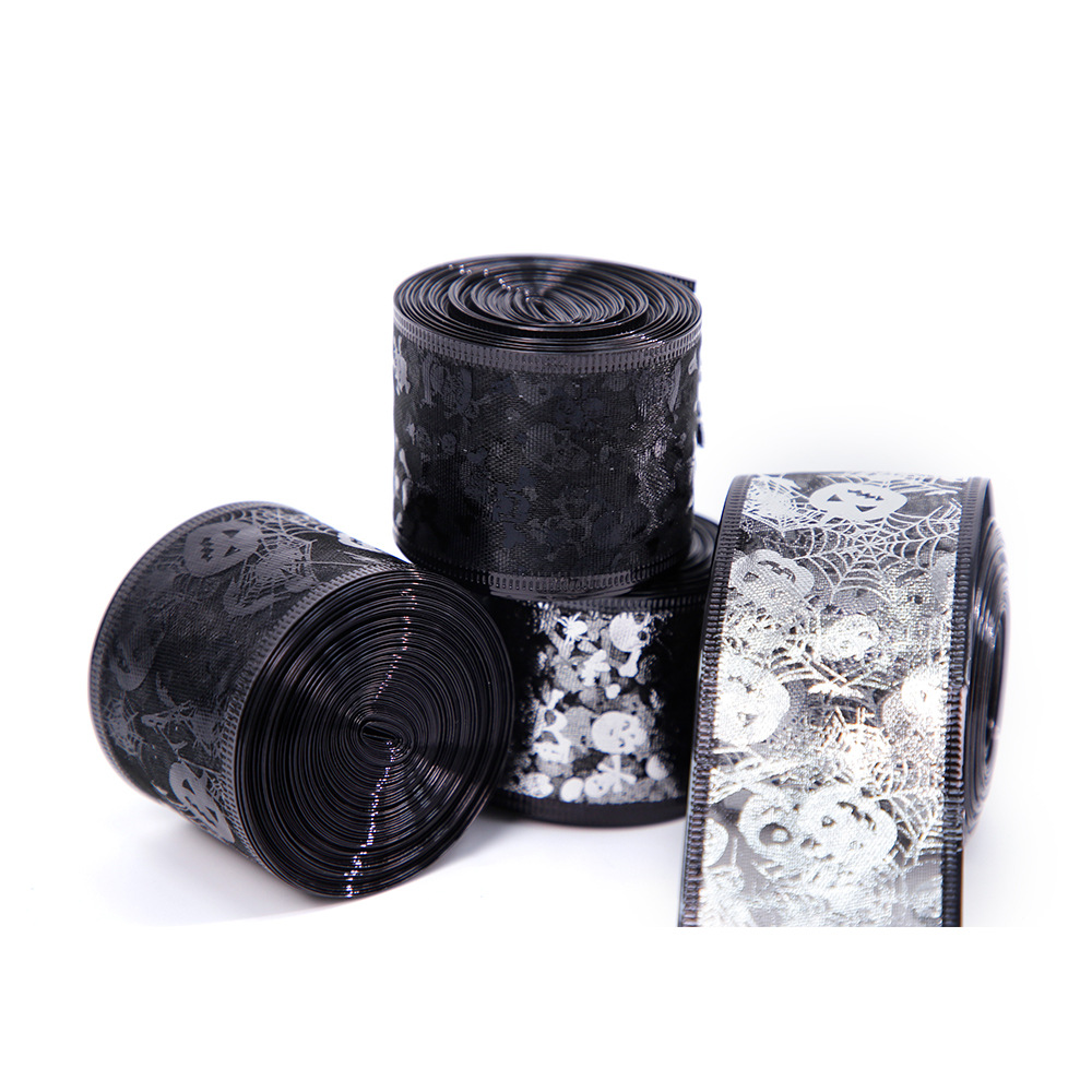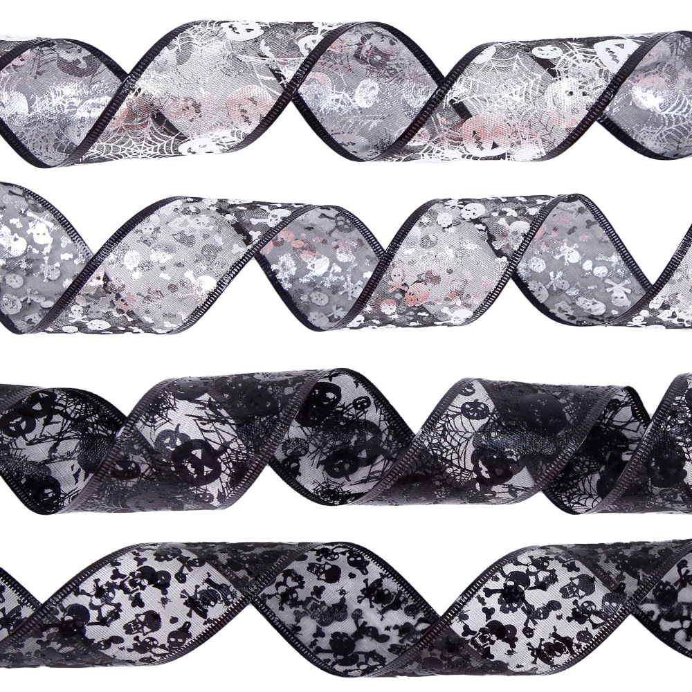 Size: (warm light 5cm double layer) bronzing Black Pumpkin spider web ribbon, (warm light 5cm double layer) bronzing silver skull ribbon, (warm light 5cm double layer) bronzing black skull ribbon, (warm light 5cm double layer) gilding silver Pumpkin spider web ribbon,(5cm double layer) bronzing Black Pumpkin spider web ribbon,(5cm double layer) bronzing black skull ribbon,(5cm double layer) gilding silver skull ribbon,(5cm double layer) gilding silver Pumpkin spider web ribbon