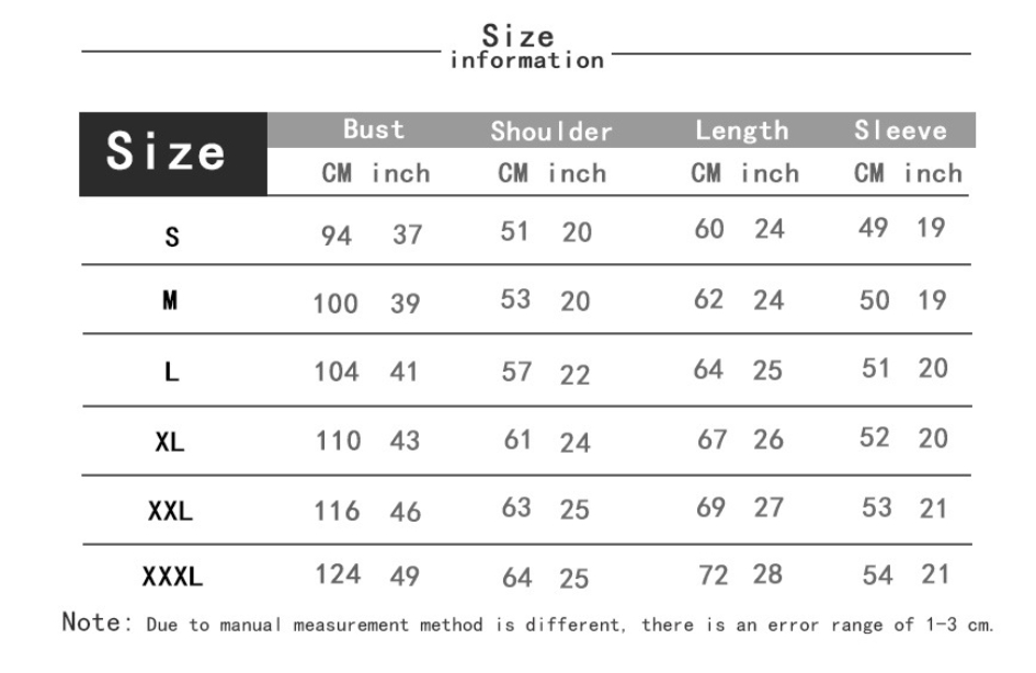 1. Asian sizes are 1 to 2 sizes smaller than European and American people. Choose the larger size if your size between two sizes. Please allow 2-3cm differences due to manual measurement. 2. Please check the size chart carefully before you buy the item, if you don't know how to choose size, please contact our customer service. 3.As you know, the different computers display colors differently, the color of the actual item may vary slightly from the following images.