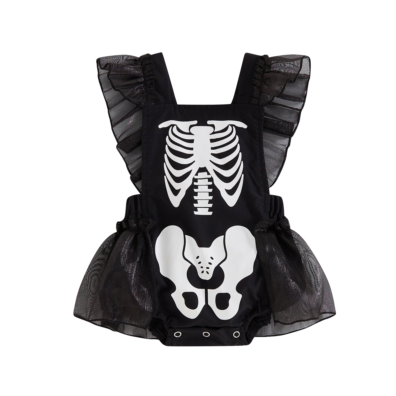 Halloween Popular Baby Girl Flying Sleeve Skull Pattern Vest Dress