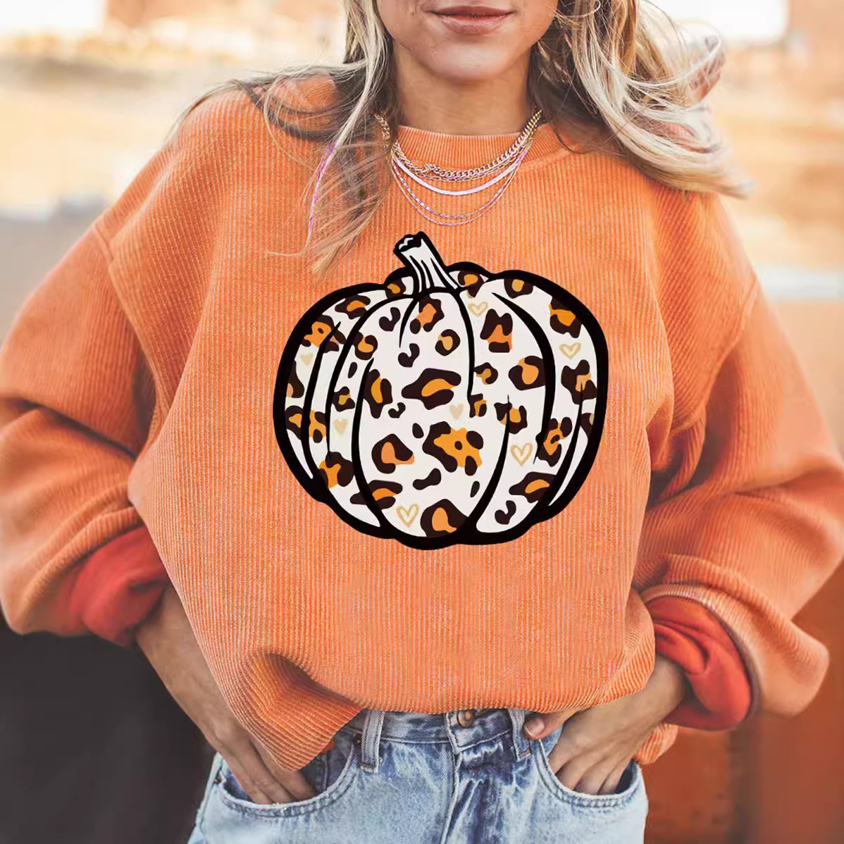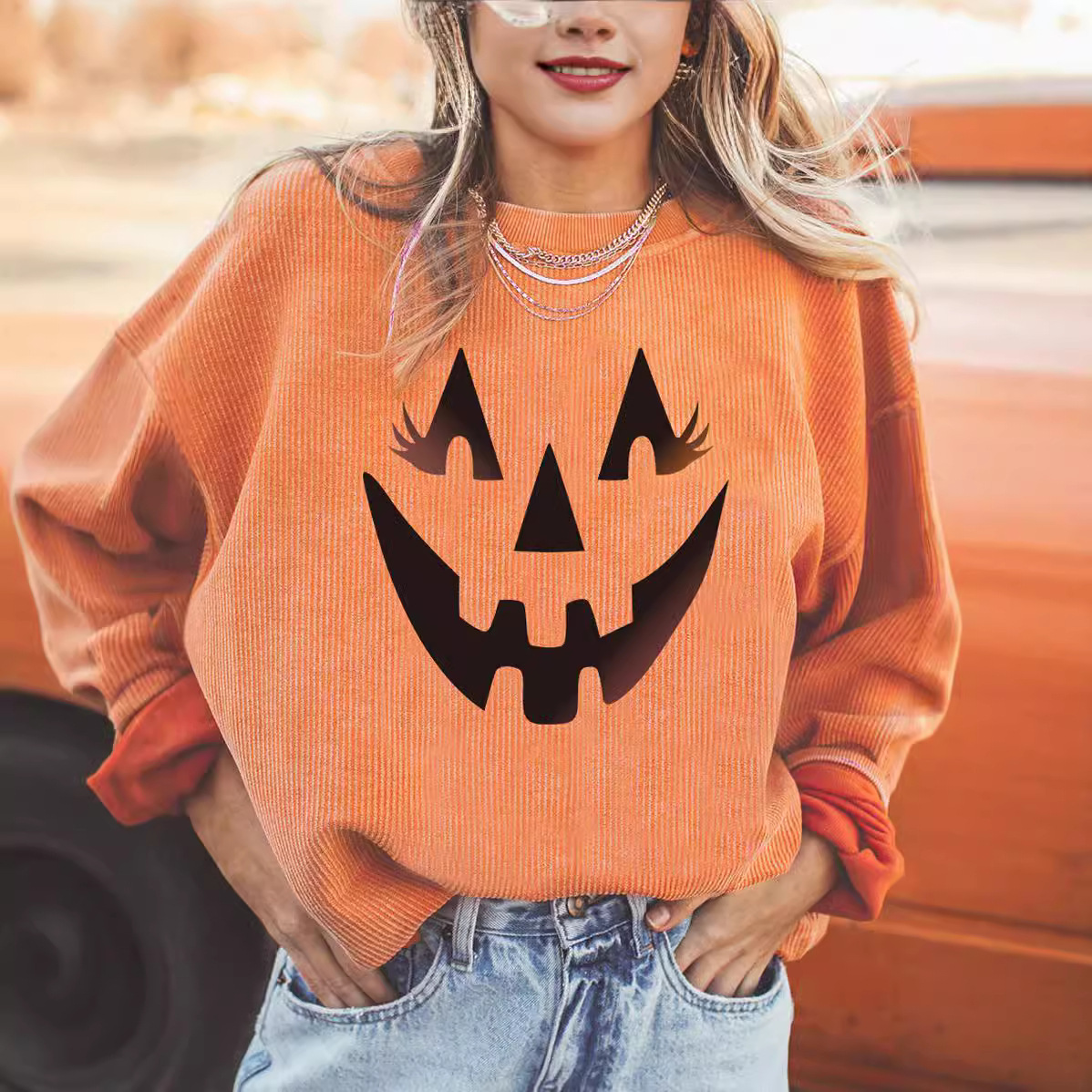 Halloween Pumpkin Head Sweater Women's Loose Round Neck Pullover