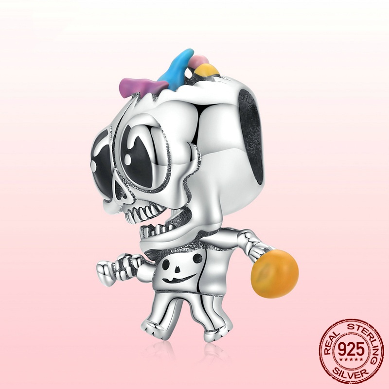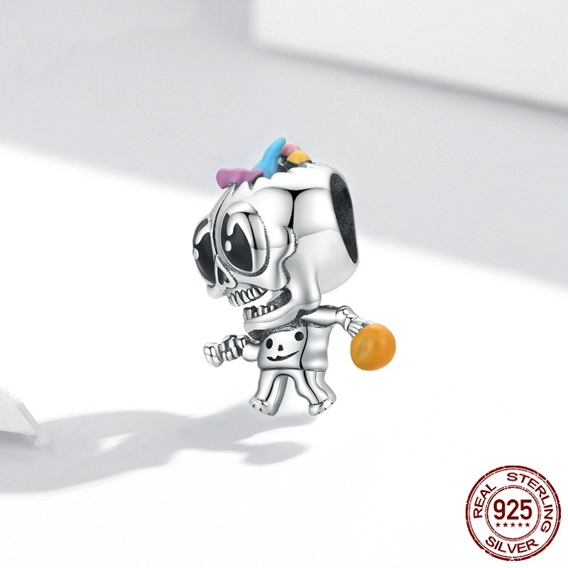 Halloween Skull DIY Bead Ornament Accessories S925 Silver Beaded