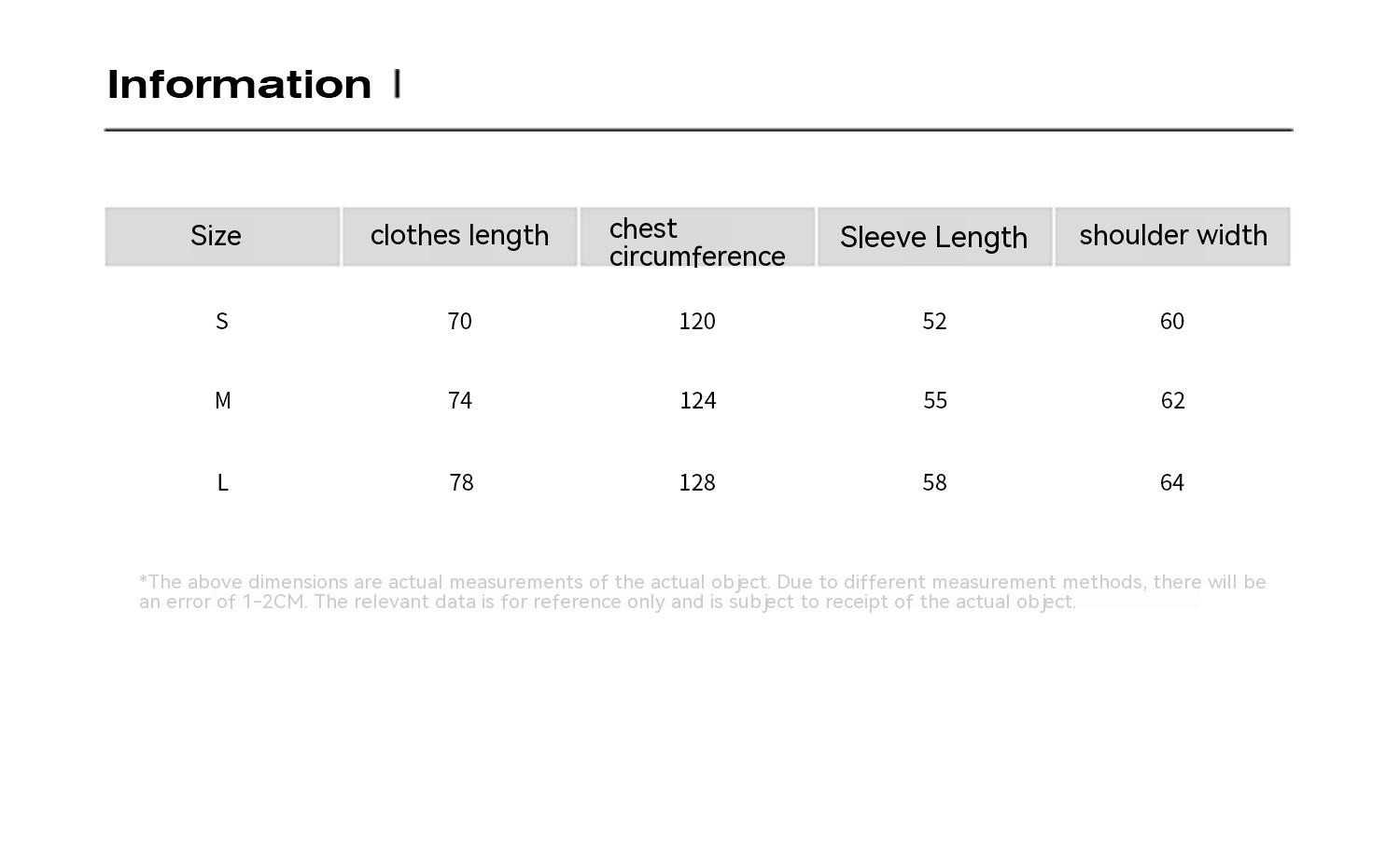 1. Asian sizes are 1 to 2 sizes smaller than European and American people. Choose the larger size if your size between two sizes. Please allow 2-3cm differences due to manual measurement. 2. Please check the size chart carefully before you buy the item, if you don't know how to choose size, please contact our customer service. 3.As you know, the different computers display colors differently, the color of the actual item may vary slightly from the following images.