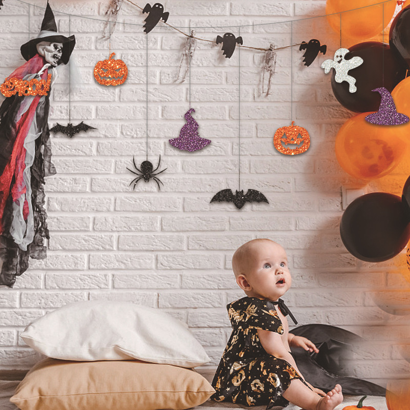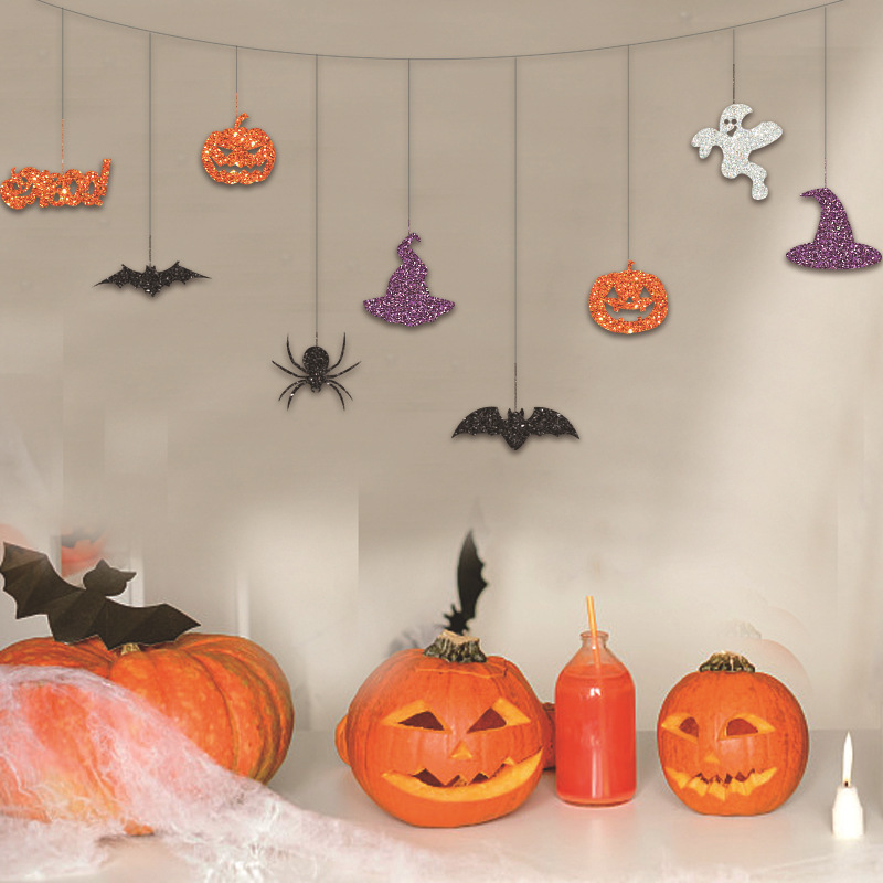 Color: Halloween boo pumpkin hat little spider length 9-piece set hanging string