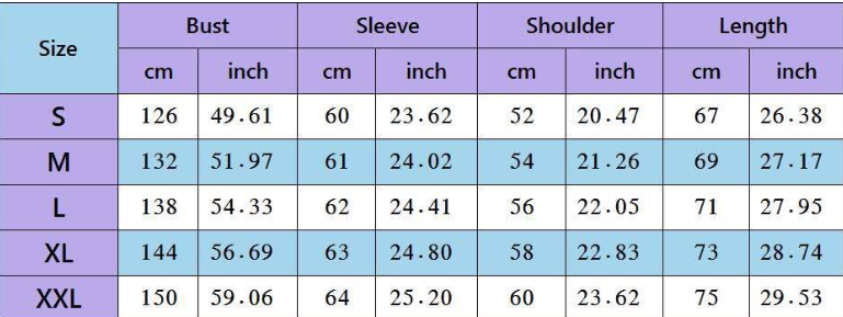 1. Asian sizes are 1 to 2 sizes smaller than European and American people. Choose the larger size if your size between two sizes. Please allow 2-3cm differences due to manual measurement.