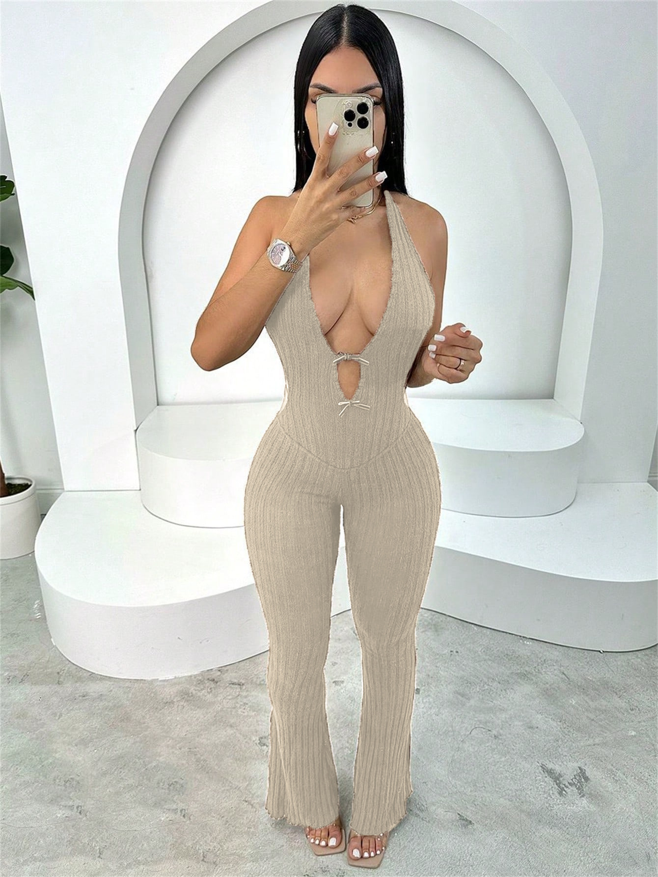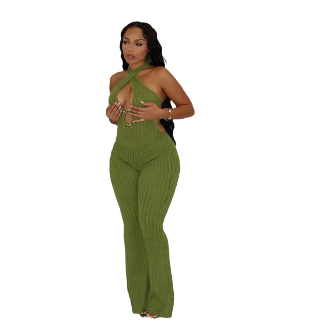 Halter Slim Fit Lace-up Backless Sexy Hot Girl Jumpsuit Women