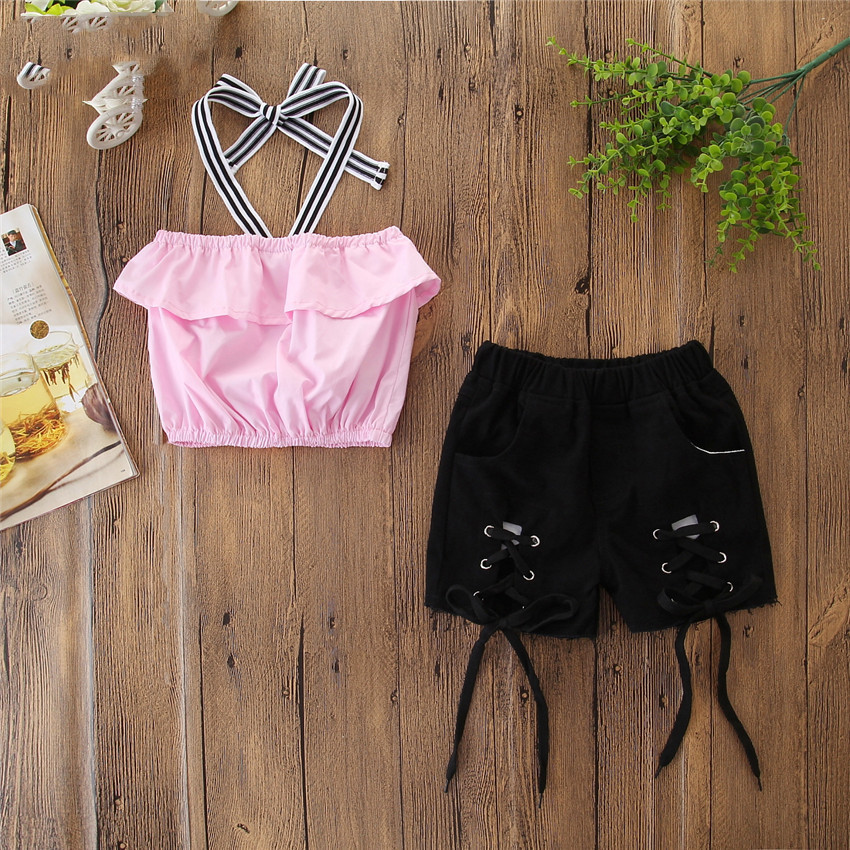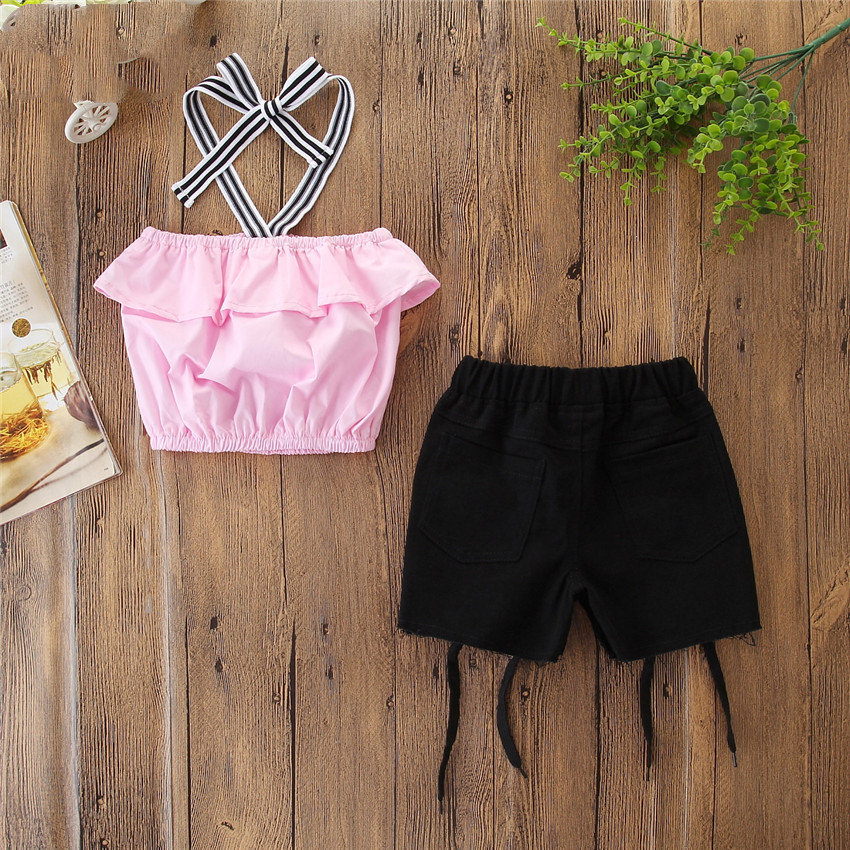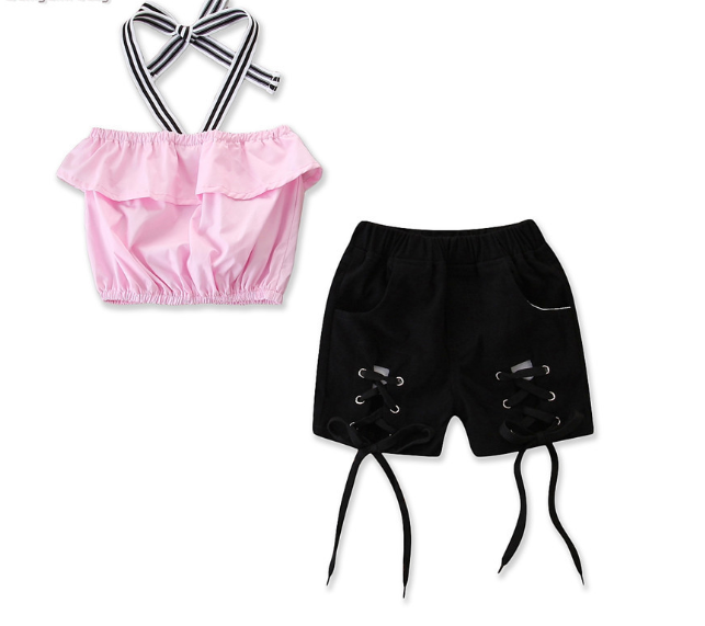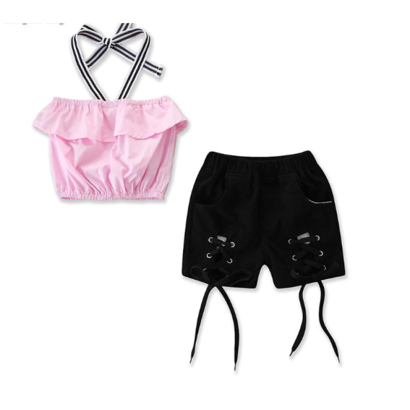 Style: European and American girl suit summer halter top + bandage denim shorts tide