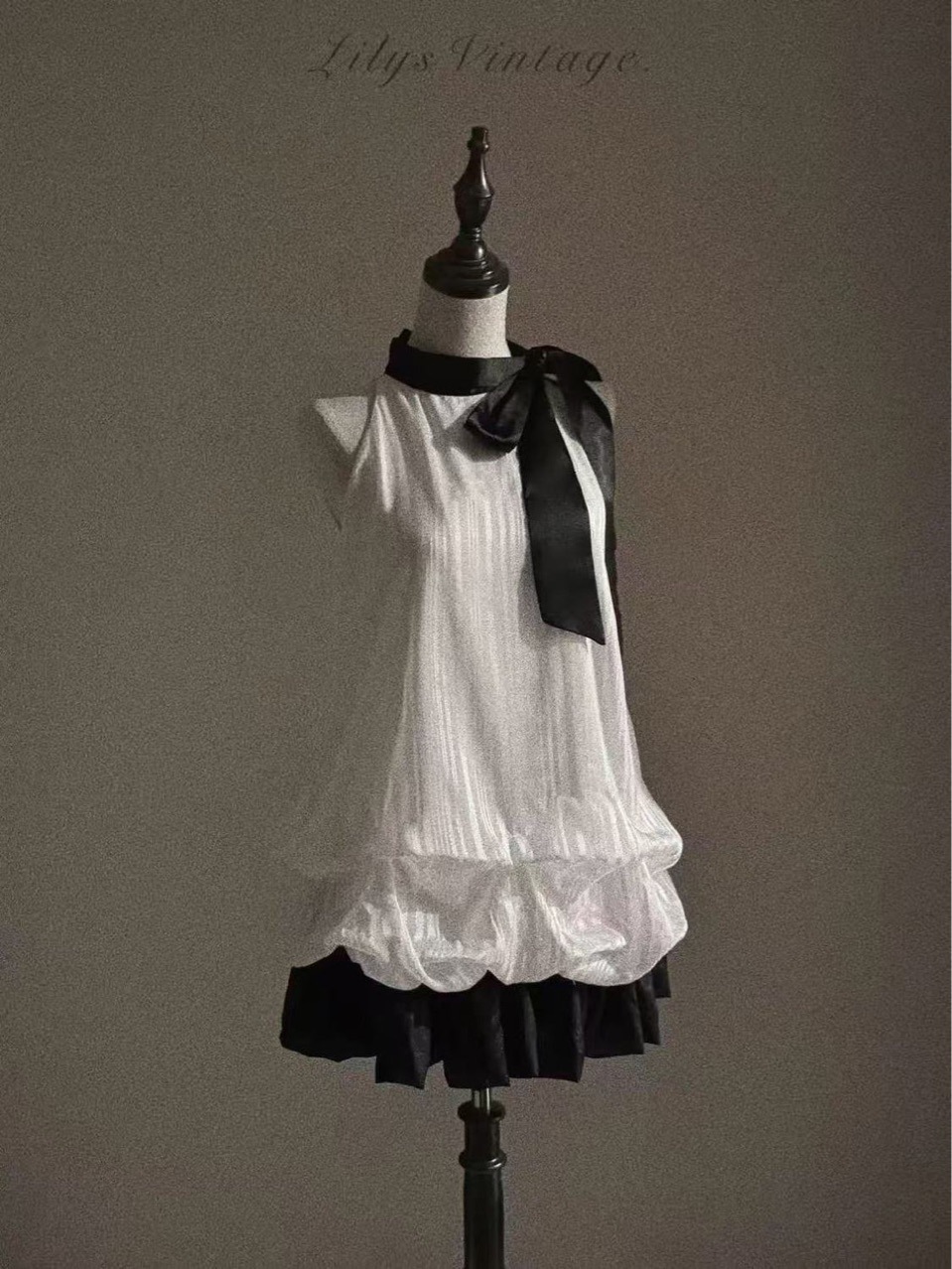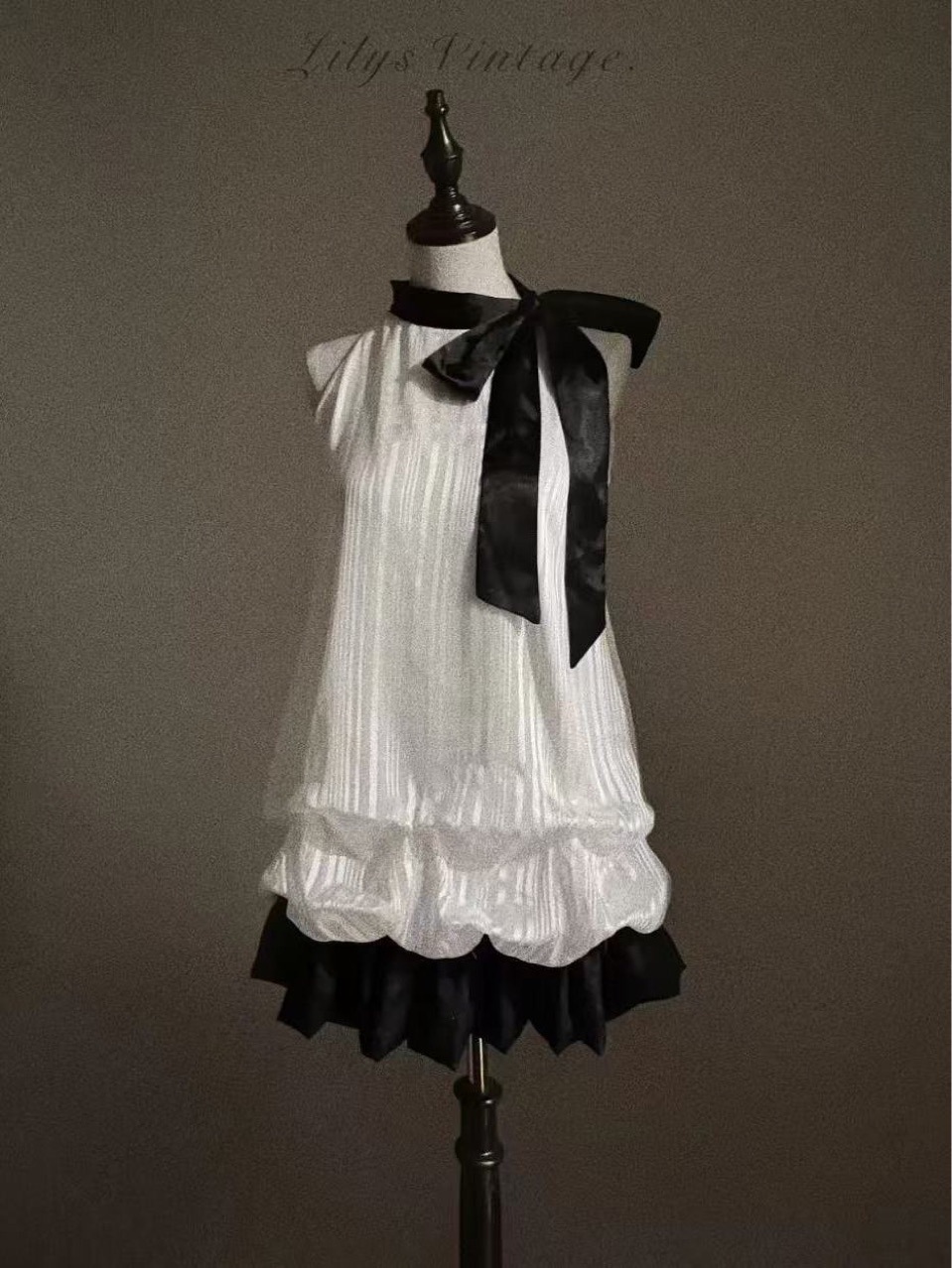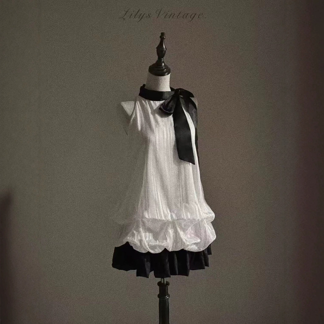 Color: Black and white halter neck fake two-piece dress