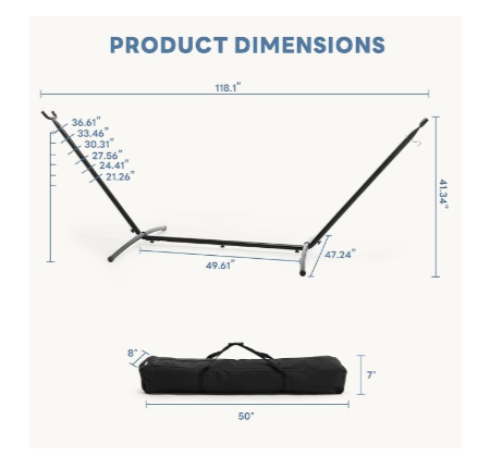 Space-saving design, flexible storage without taking up space: Compact structure saves floor space. When there is no hammock, it can be flexibly placed in indoor Spaces such as bedrooms and balconies. After disassembly, it can be tightly stored and does not occupy storage space.