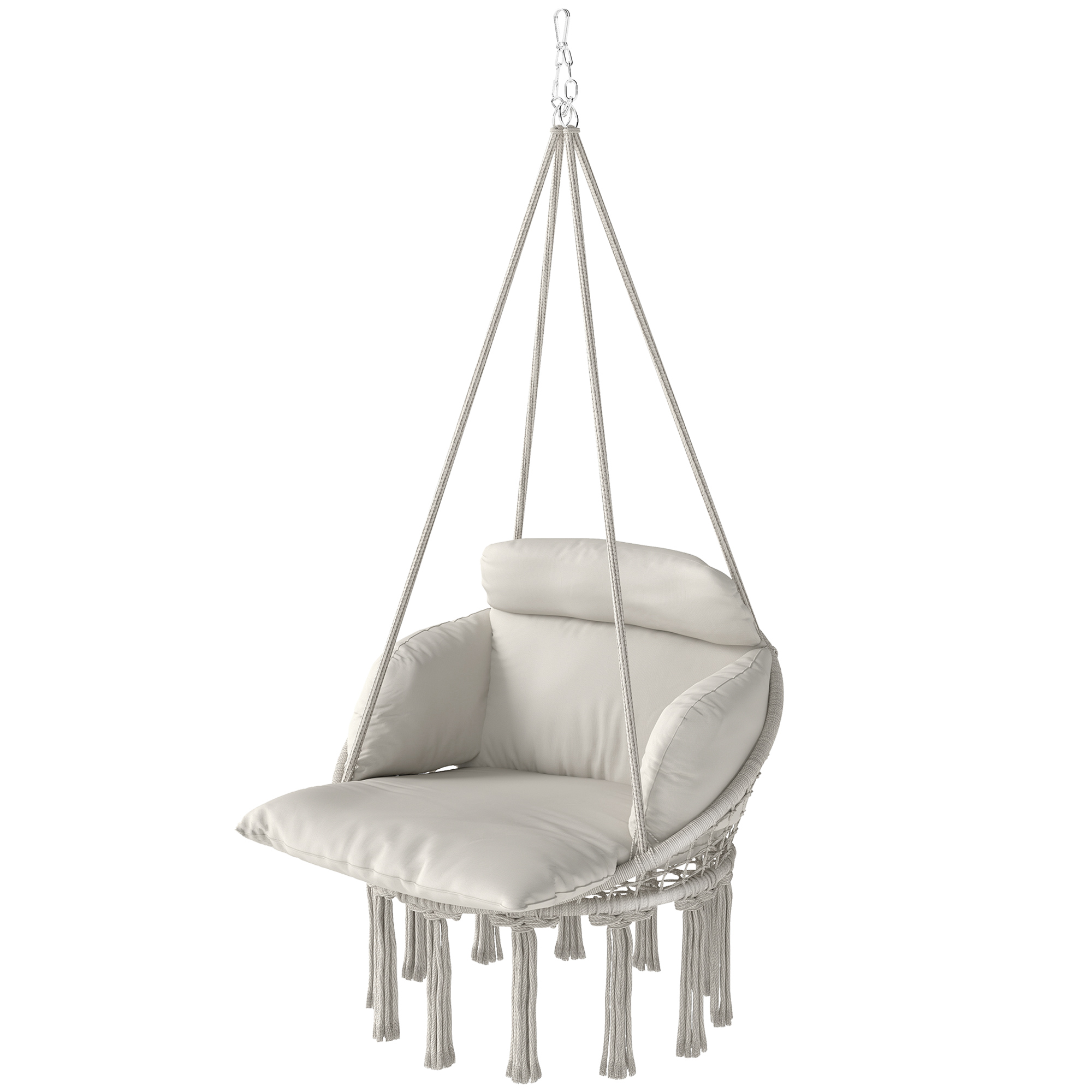 Hammock Swing Chair, Hanging Chair With Large Cushion, Chain, Steel Frame For Indoor Outdoor Use, Cream White