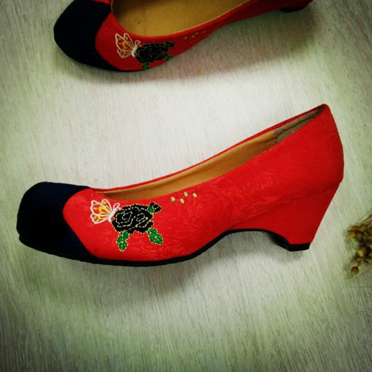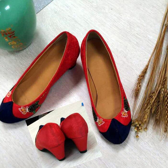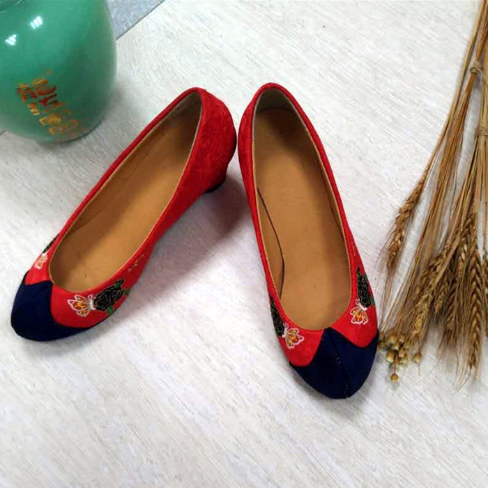 Hanbok Red Embroidered Hook Shoes