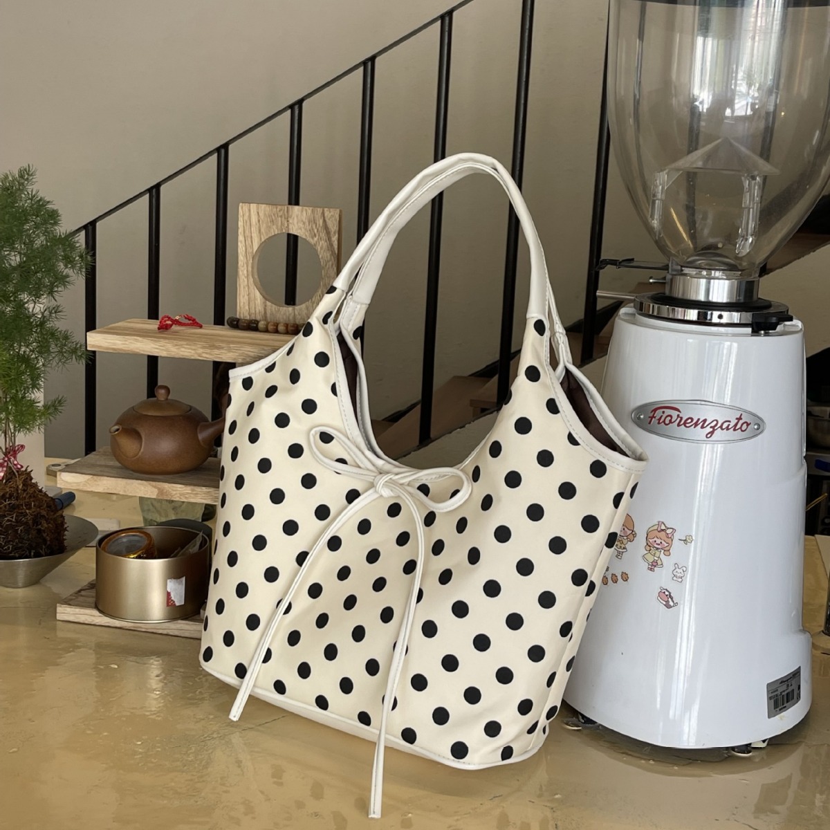 Hand-carrying Retro Casual Tote Bag Fashion Polka Dot Underarm Bag Large Capacity