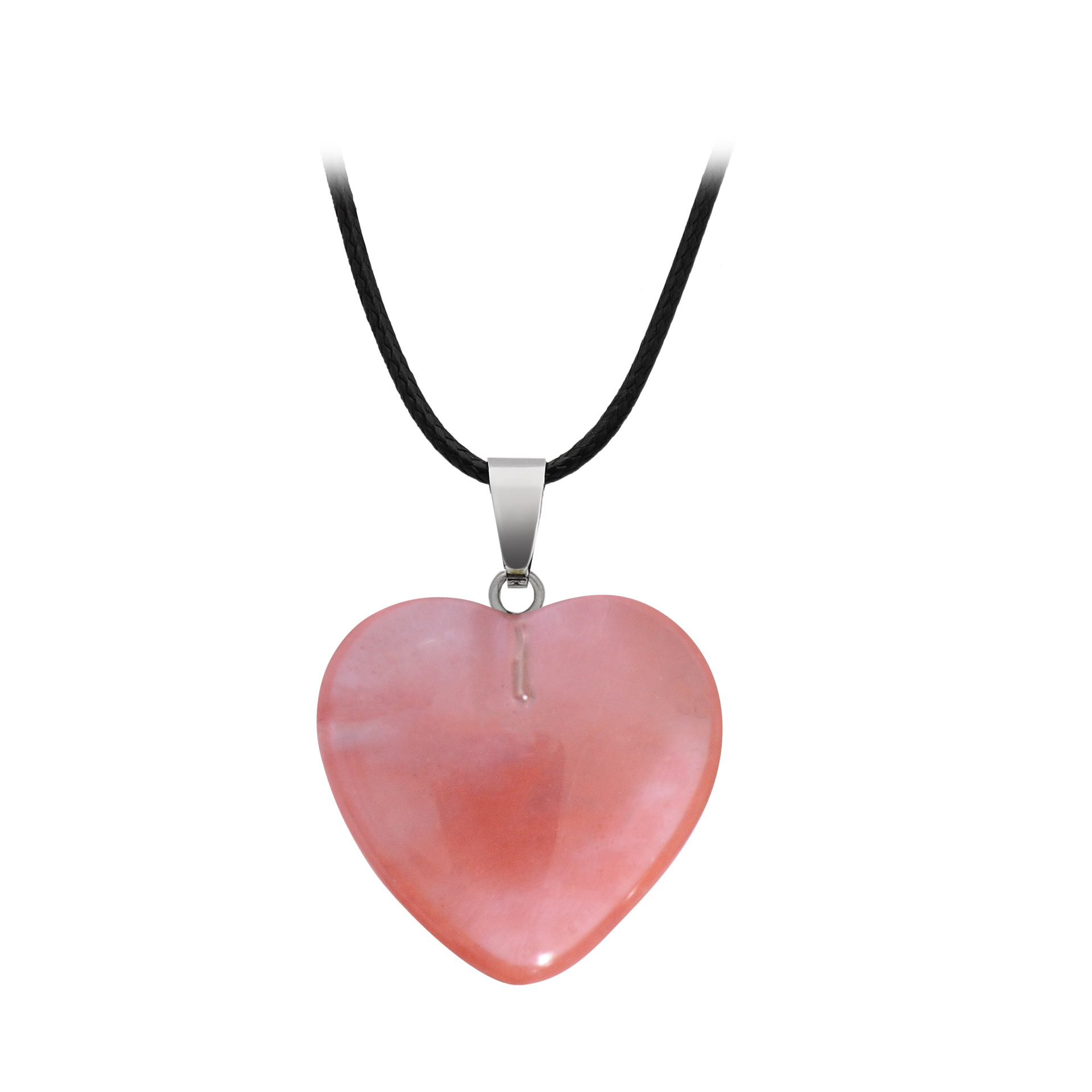 Hand-carved Love Heart Shaped Rough Stone Peach Heart Crystal Necklace
