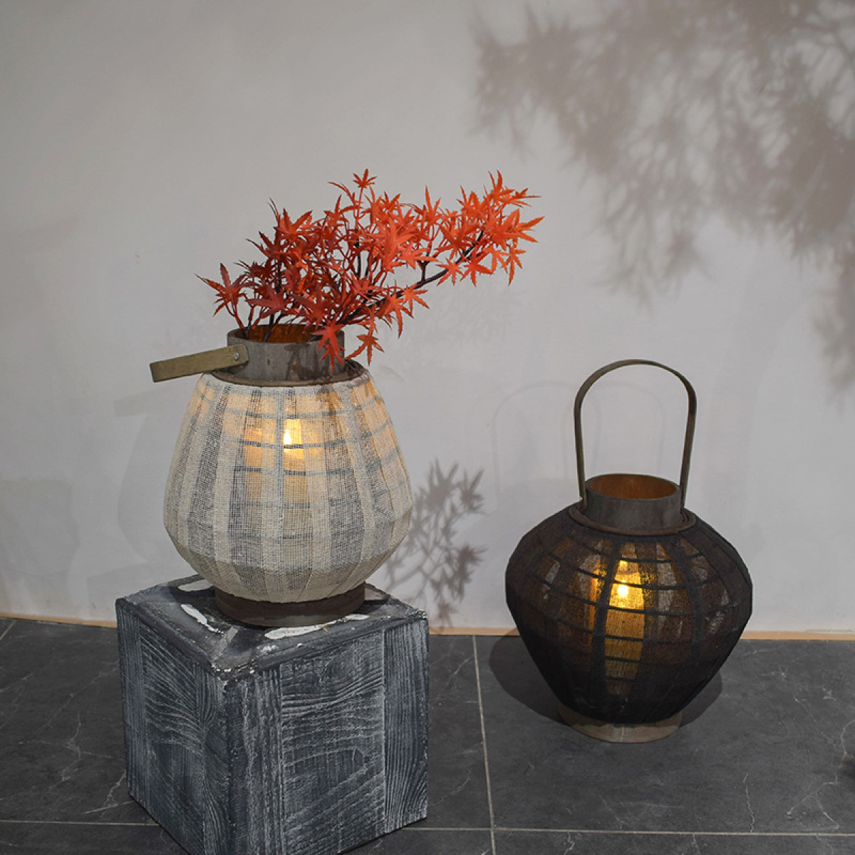 Product information Types of utensils: candlesticksMaterial: bamboo strip ‖ linen clothColor: beige, black PackingBamboo candle holder *1