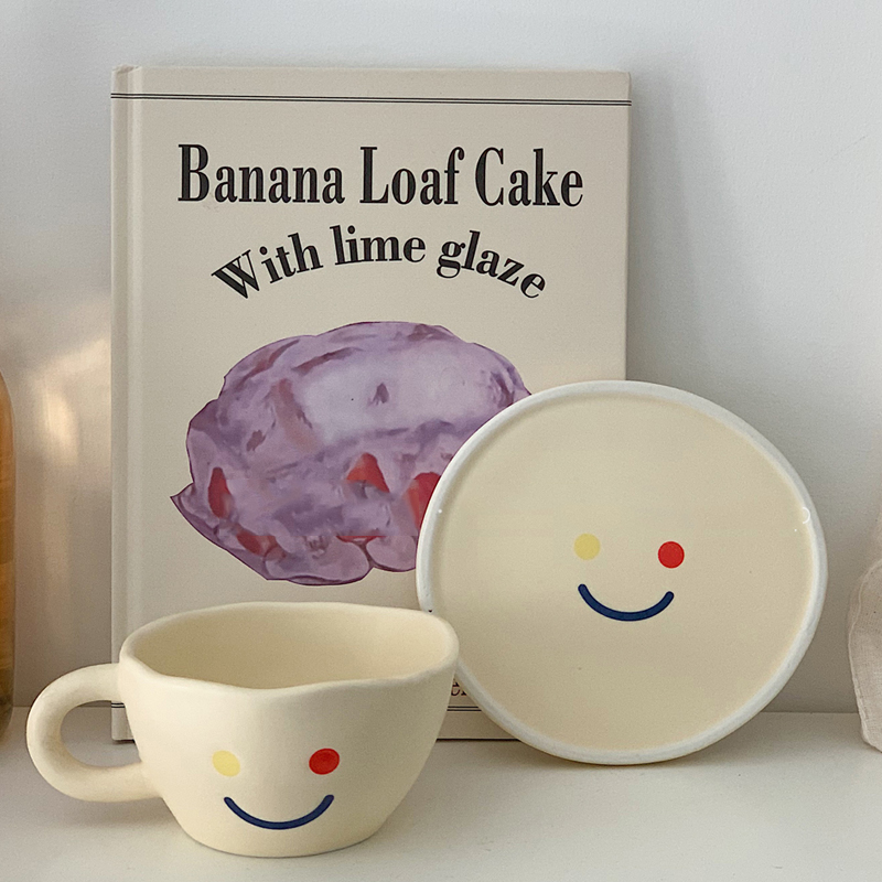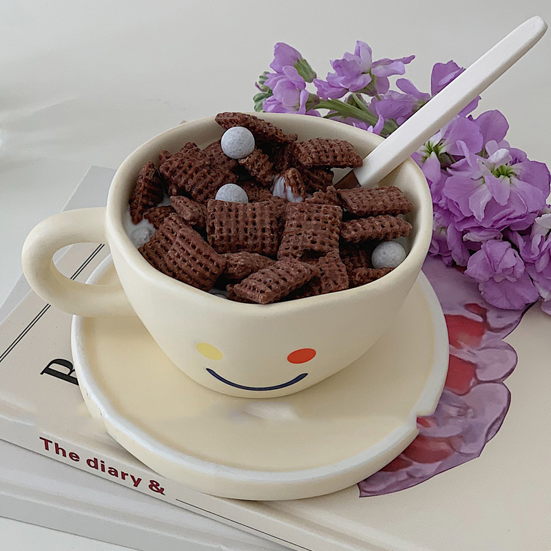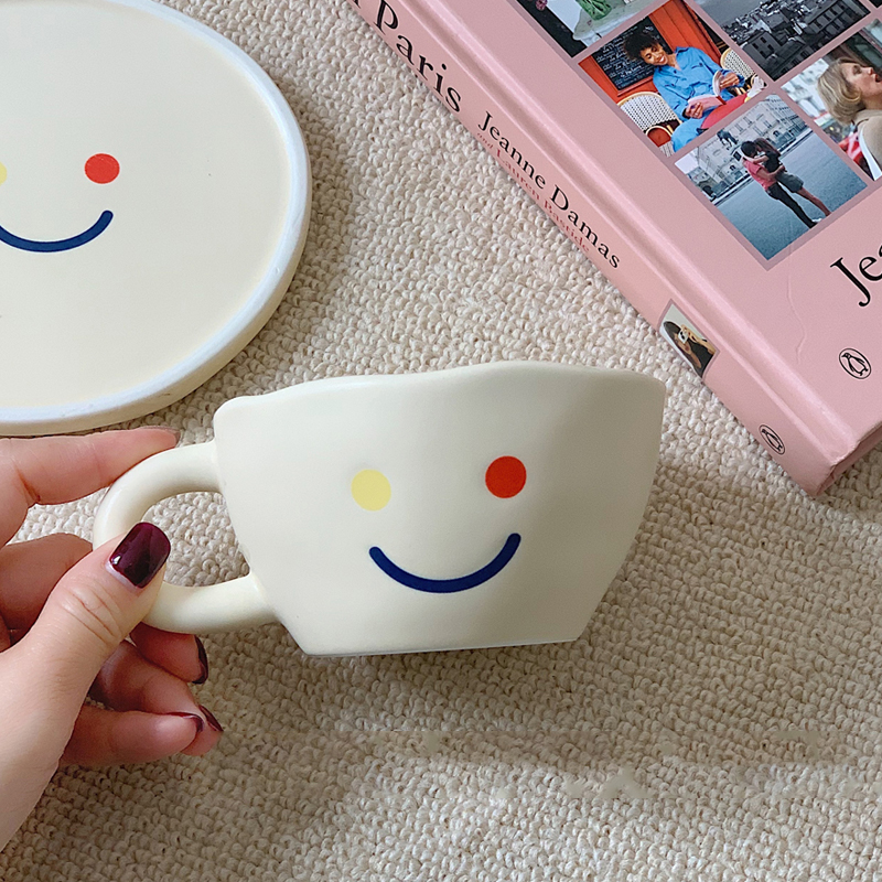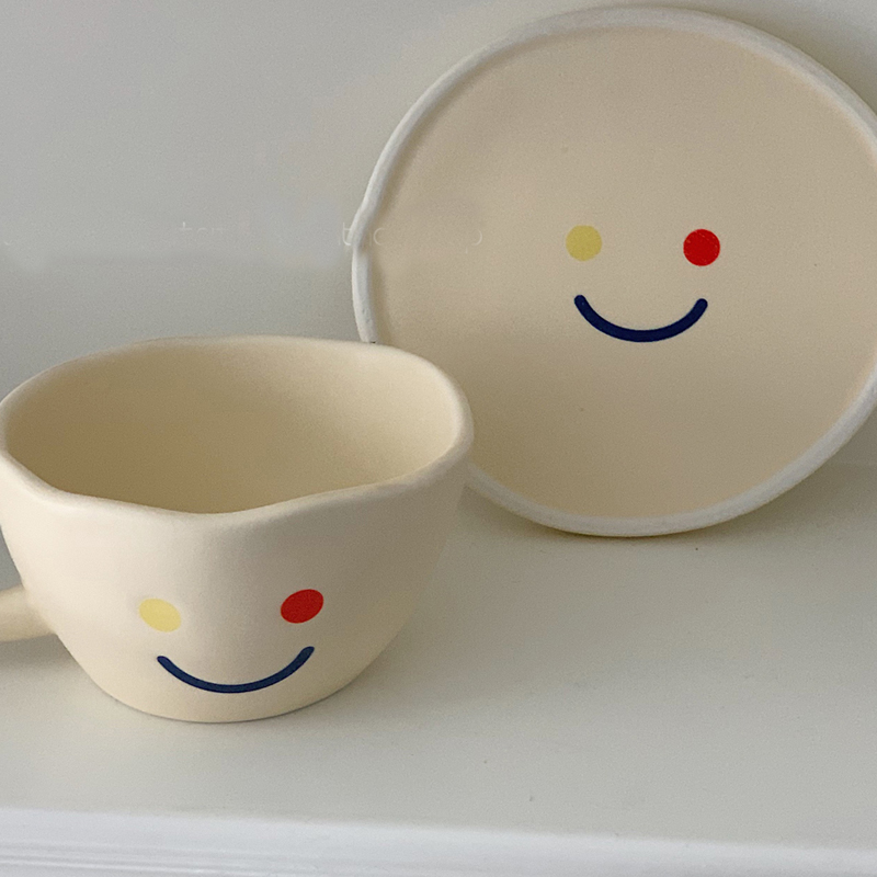 Hand Hold Ceramic Mug With Smiley Face Coffee Cup And Saucer