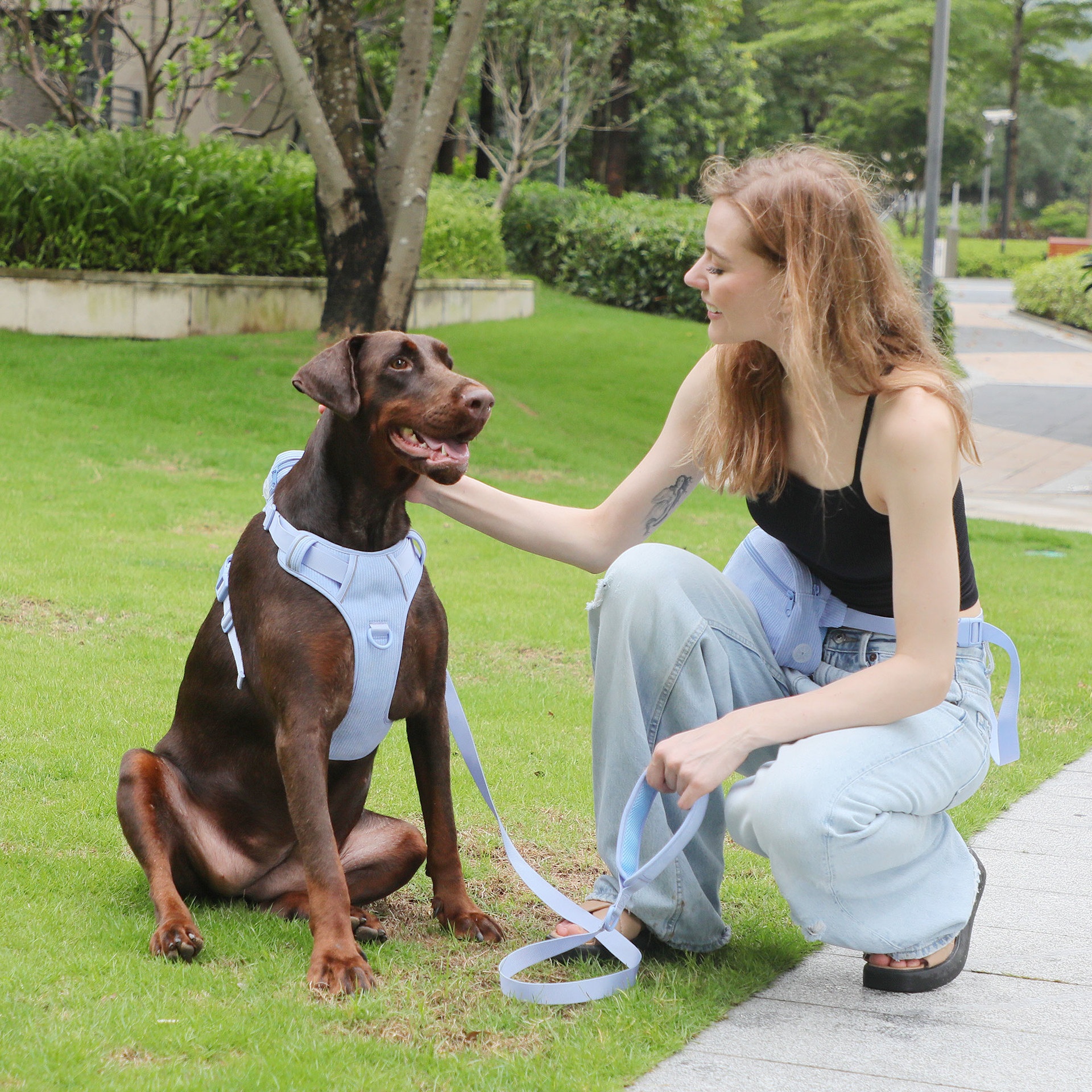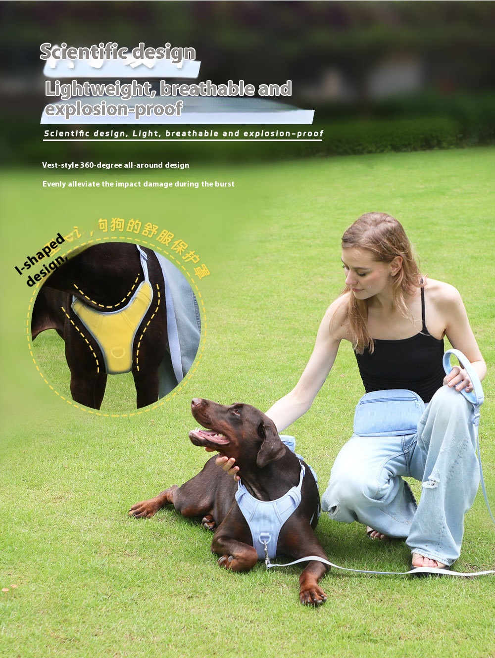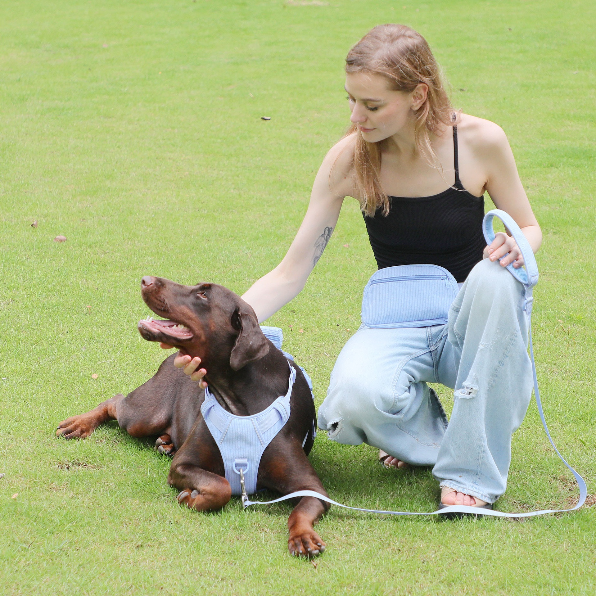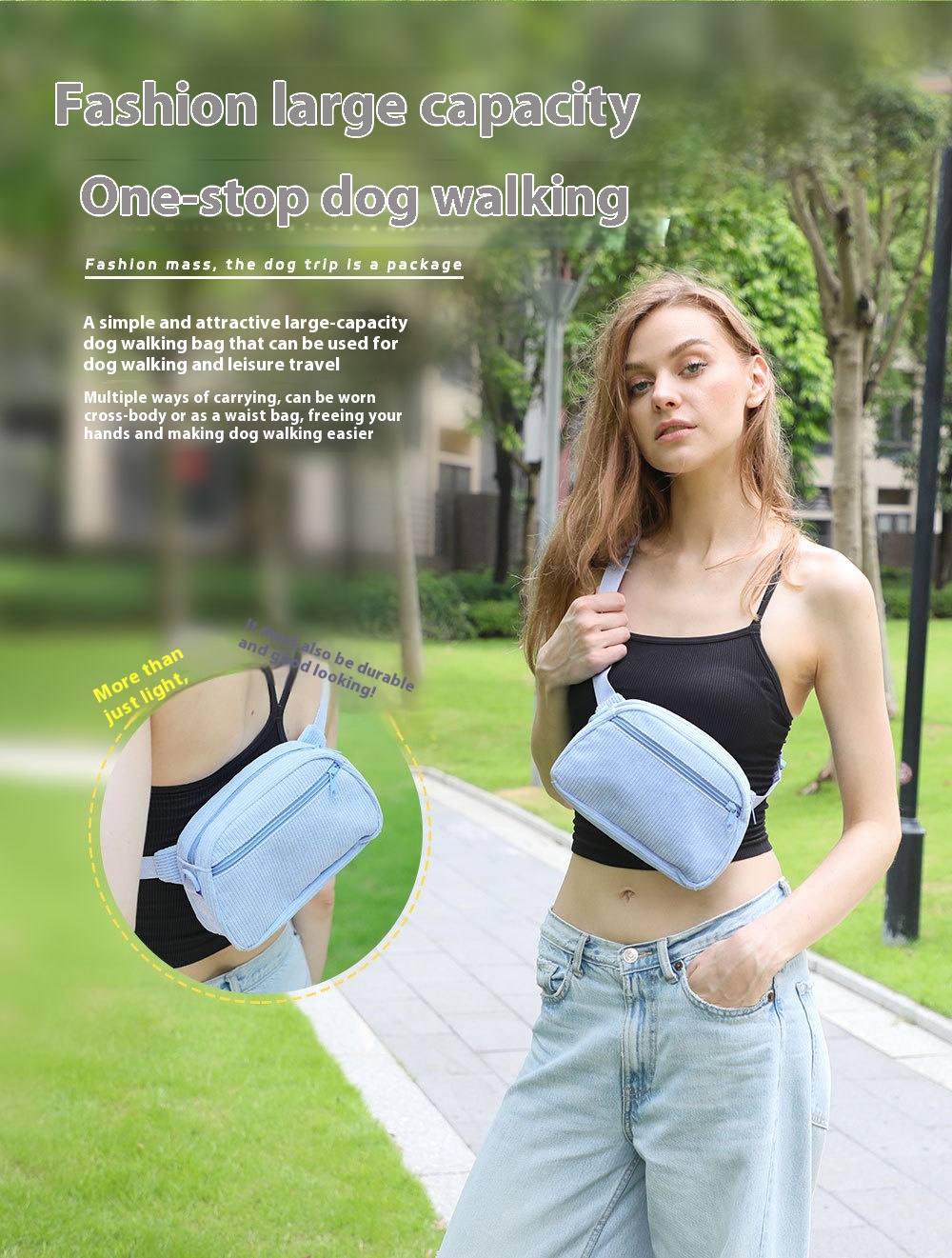 Color: baby blue pet collar, baby blue pet hand holding rope, baby blue pet's chest-back, baby blue mini schoolbag dog stool bag, baby blue dog walking bag