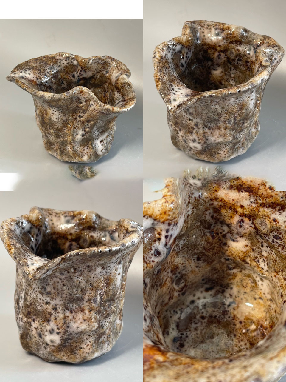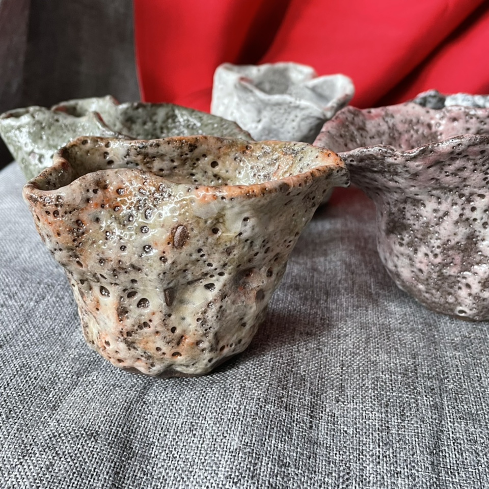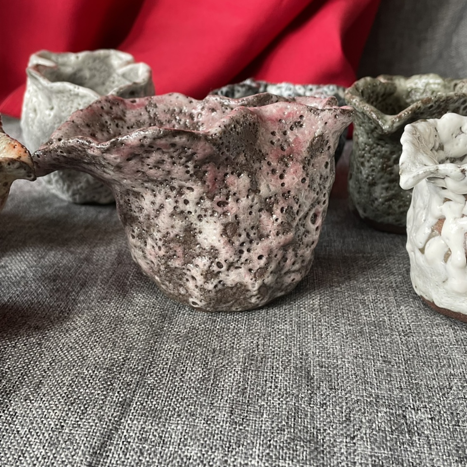 1*Hand kneaded coarse pottery high temperature environmental protection grey glaze worm Hole tea set